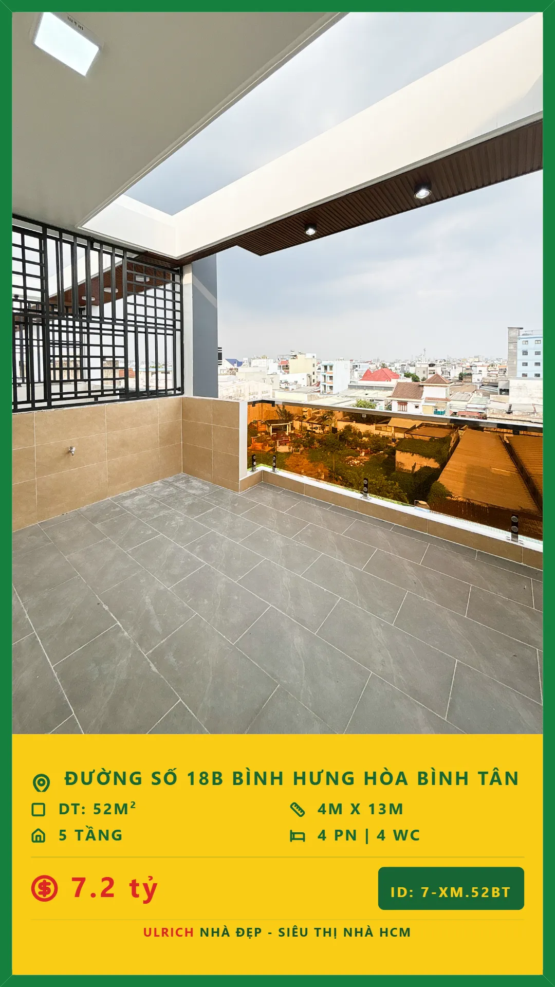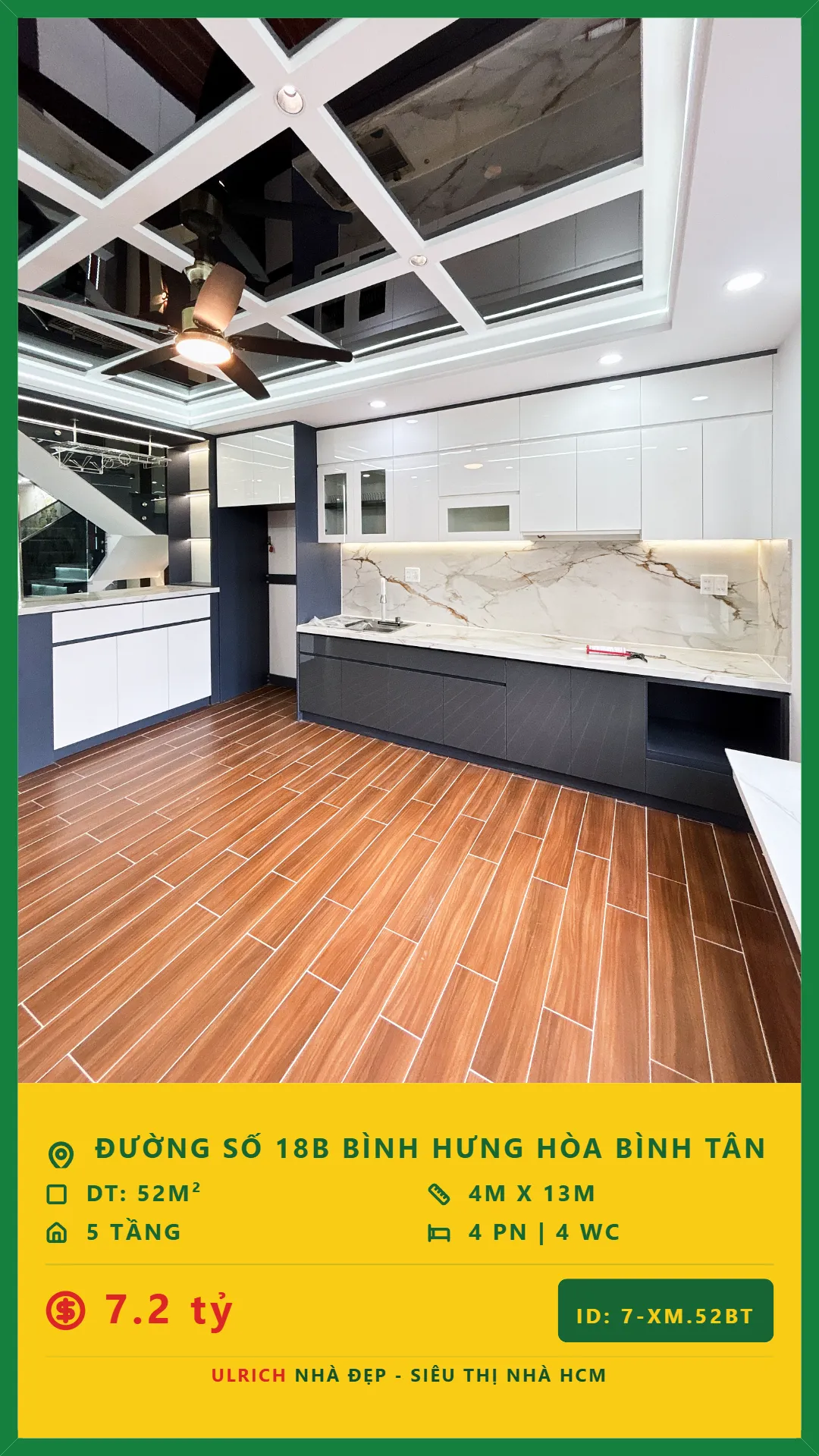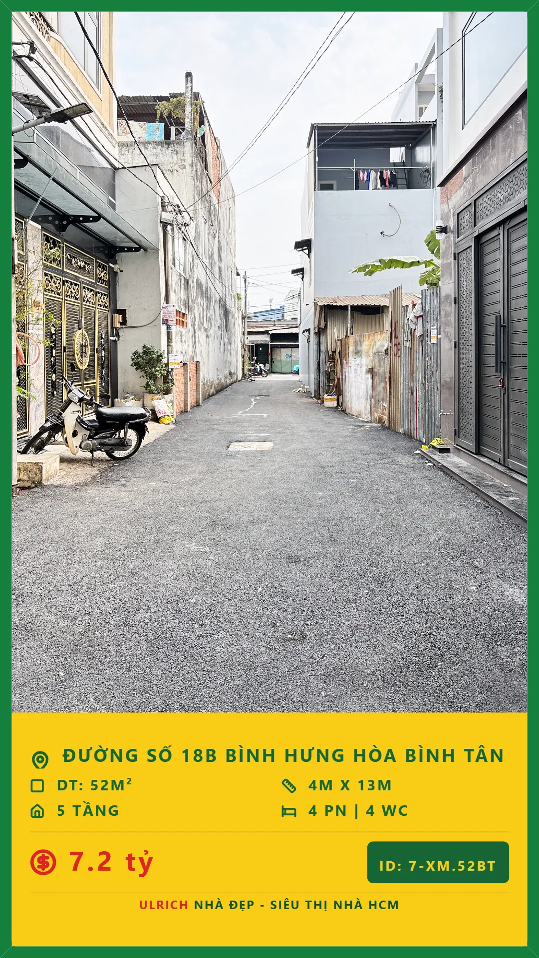 Bán Nhà xây mới 2026 Diện tích 52m2 5 tầng đường Đường số 18B P. Bình Hưng Hòa Q. Bình Tân 💰Giá 7.2 tỷ