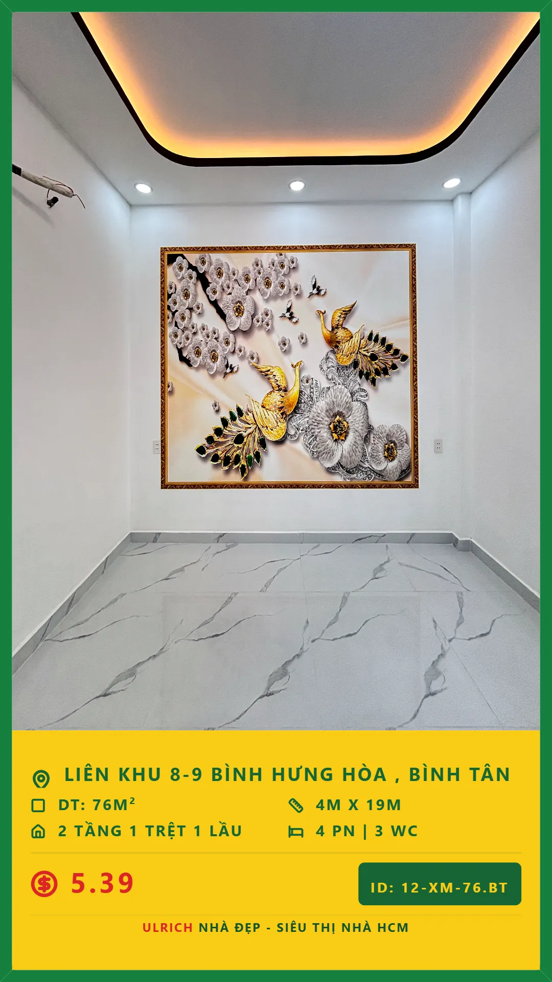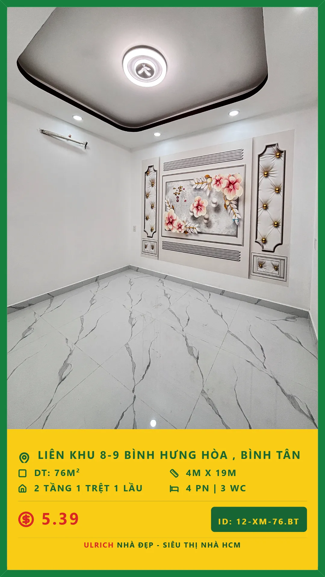 Bán Nhà xây mới 2026 Diện tích 76m2 2 tầng đường Liên khu 8-9 P. Bình Hưng Hòa Q. Bình Tân 💰Giá 5.39 tỷ