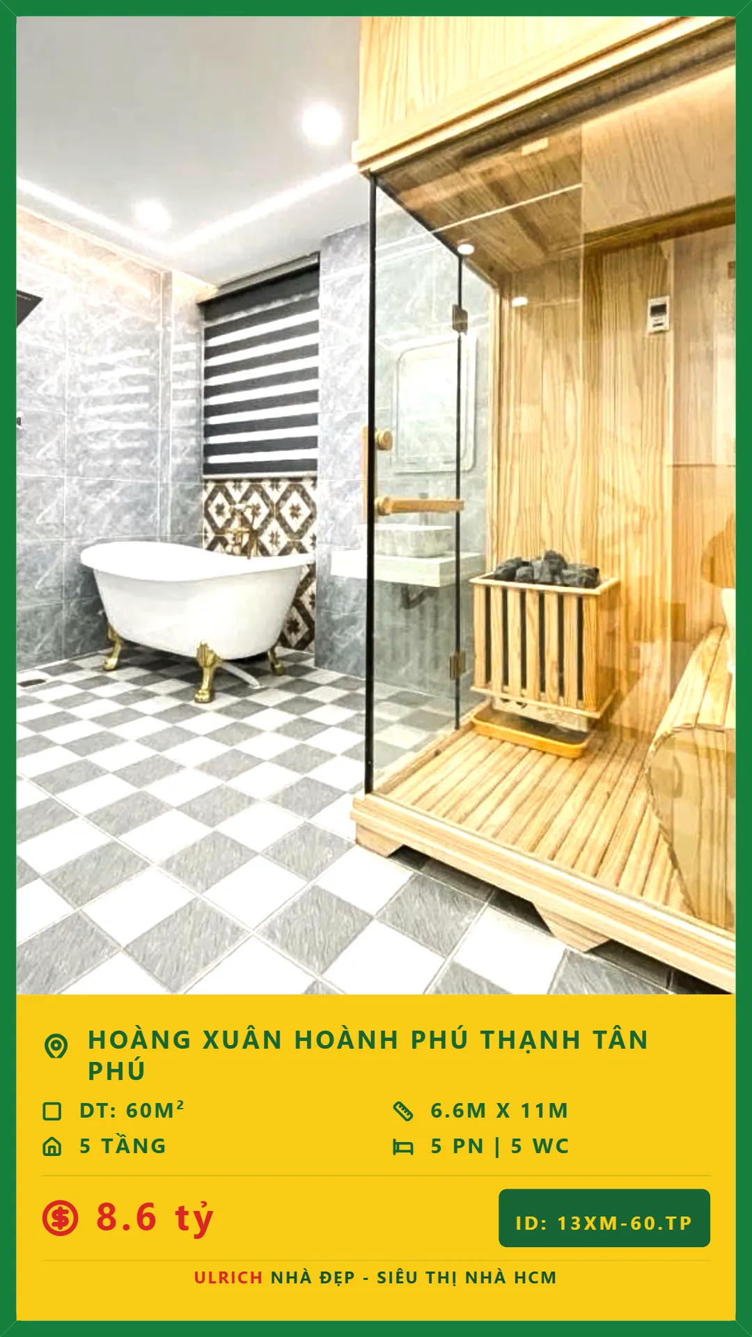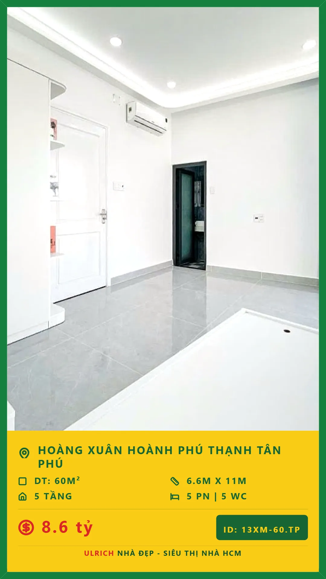Bán Nhà xây mới 2026 Diện tích 60m2 5 tầng đường Hoàng Xuân Hoành P. Phú Thạnh Q. Tân Phú 💰Giá 8.6 tỷ