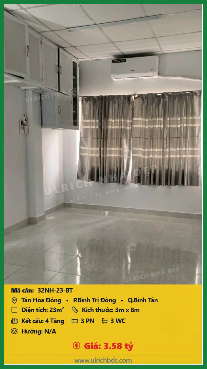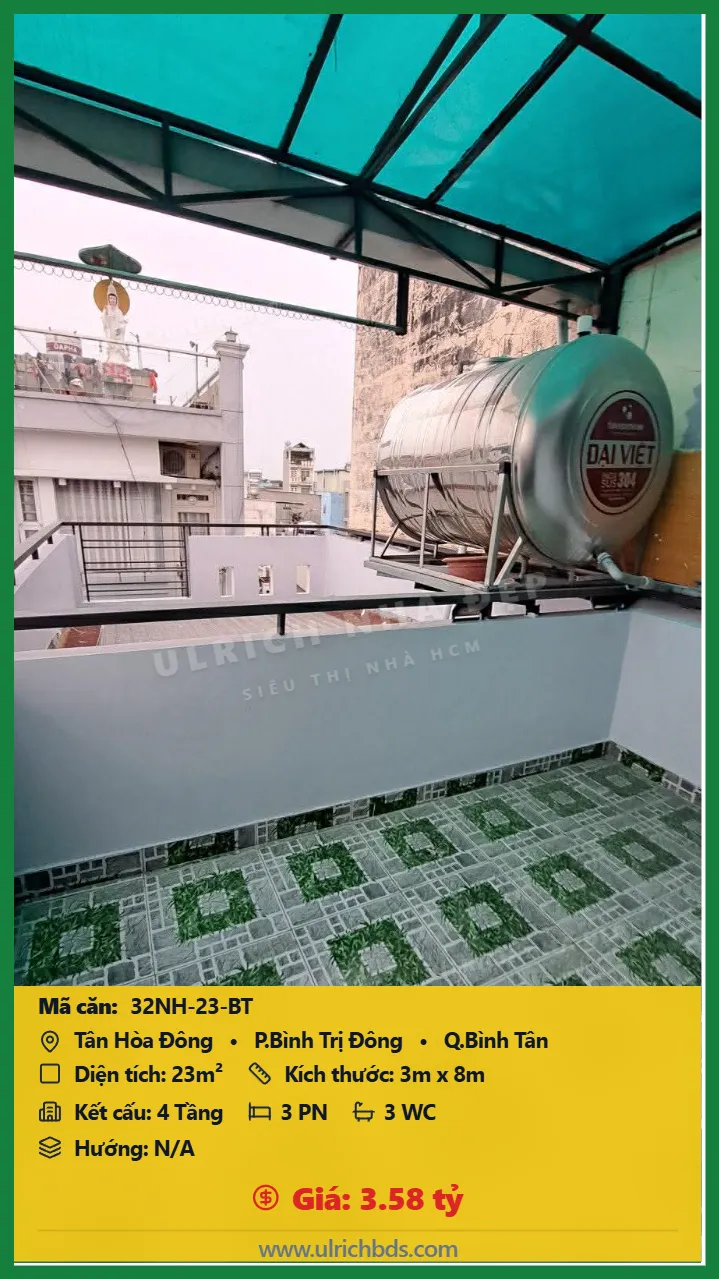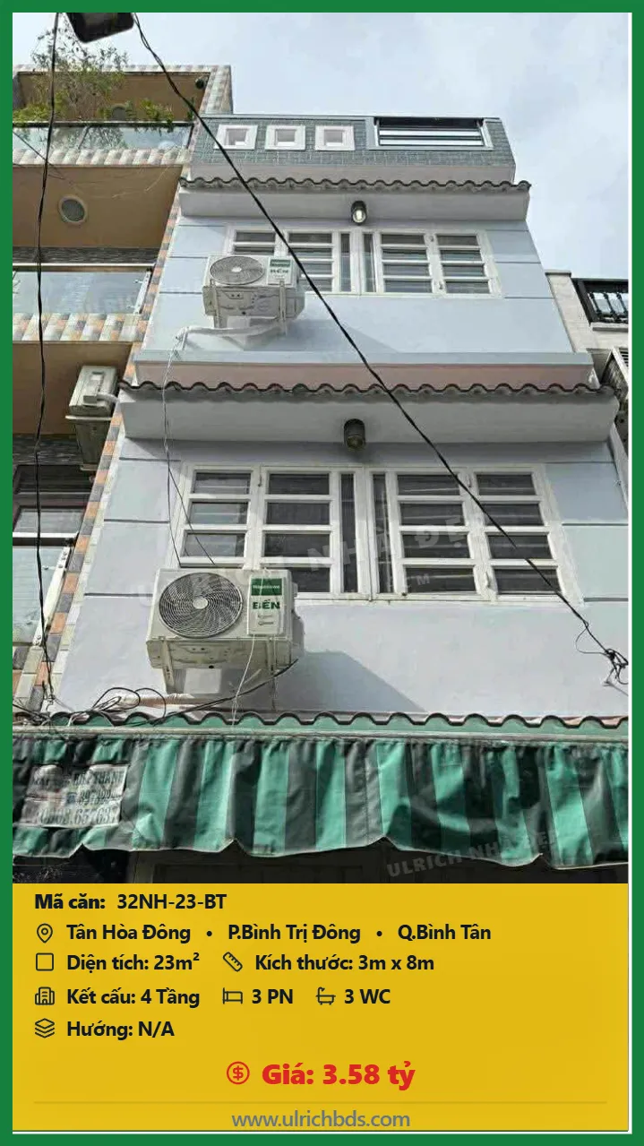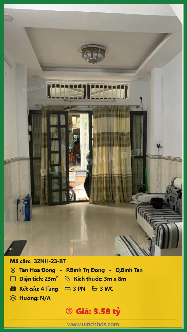Bán Nhà phố hẻm Diện tích 23m2 4 tầng đường Tân Hòa Đông P. Bình Trị Đông Q. Bình Tân 💰Giá 3.58 tỷ