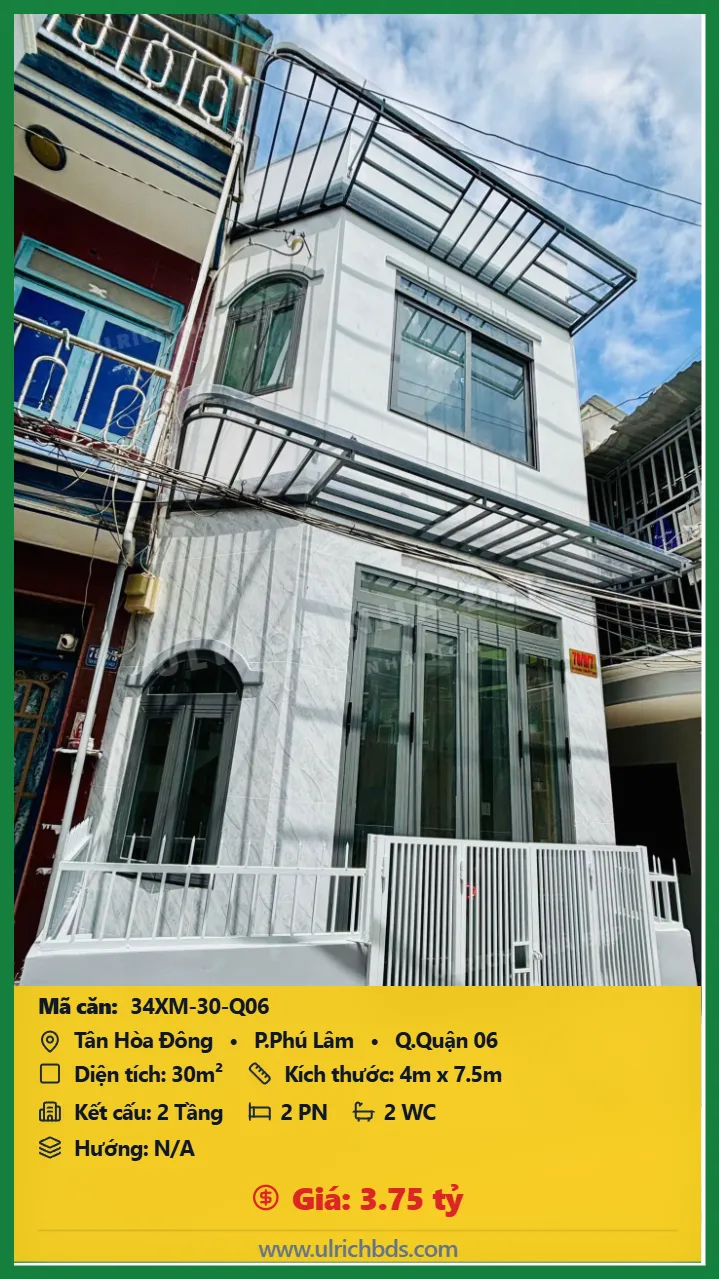 Bán Nhà xây mới 2026 Diện tích 30m2 2 tầng đường Tân Hòa Đông P. Phú Lâm Q. Quận 06 💰Giá 3.75 tỷ