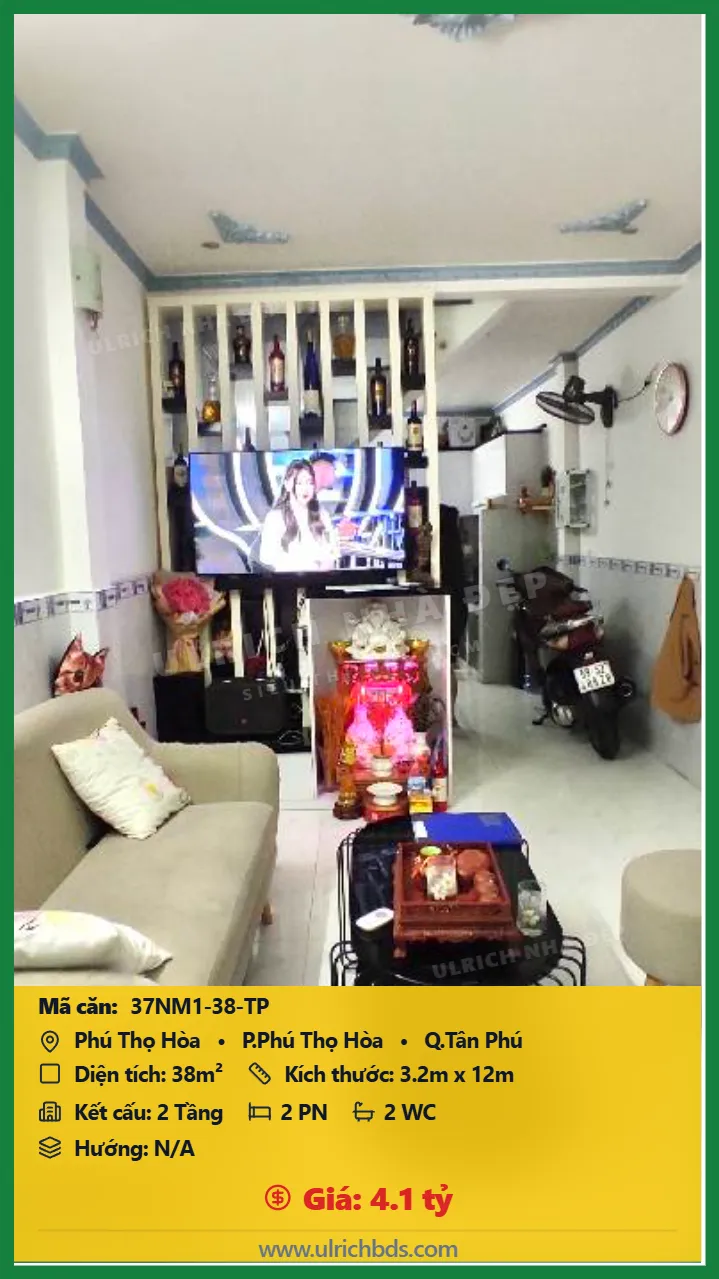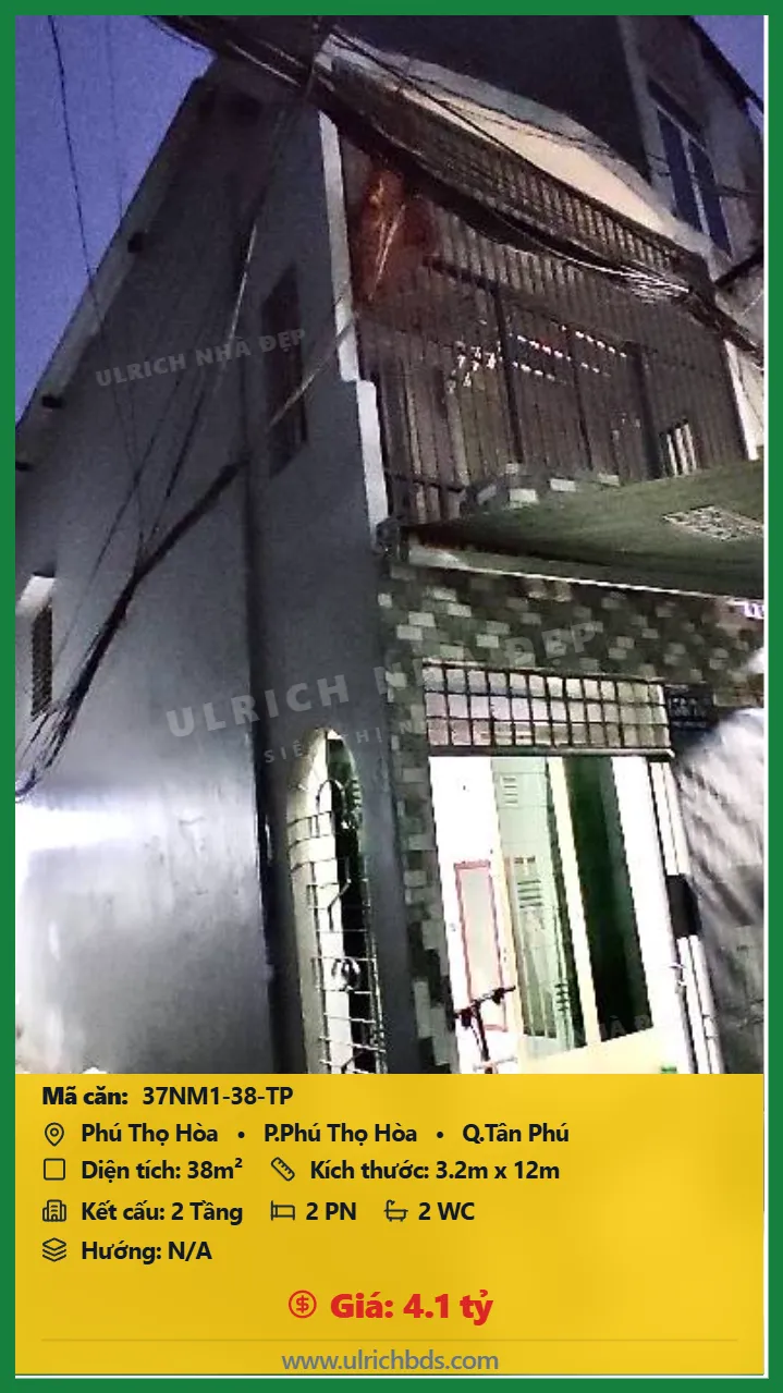 Bán Nhà mới Diện tích 38m2 2 tầng đường Phú Thọ Hòa P. Phú Thọ Hòa Q. Tân Phú 💰Giá 4.1 tỷ