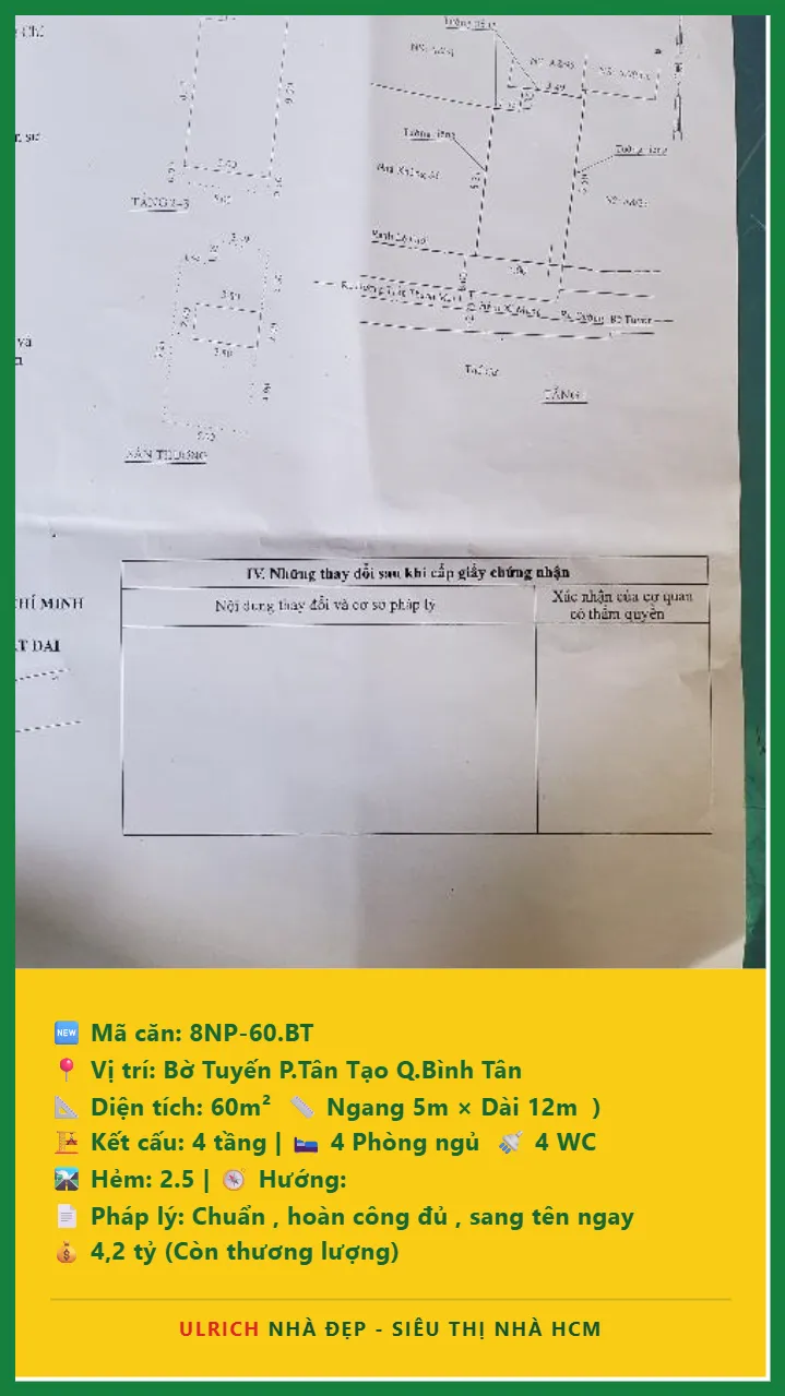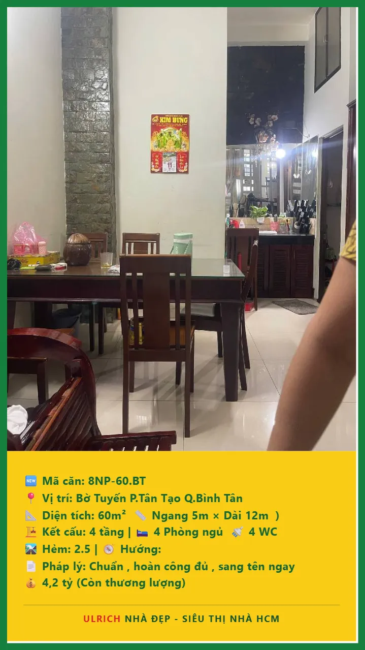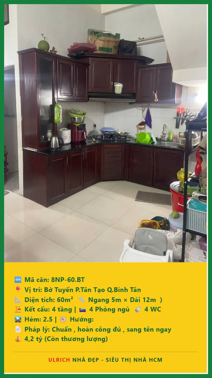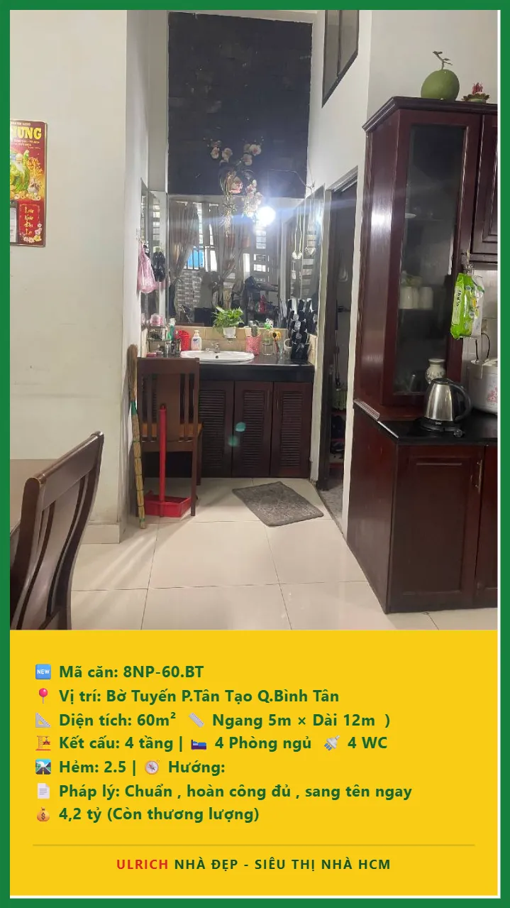 Bán Nhà phố hẻm Diện tích 60m2 4 tầng đường Bờ Tuyến P. Tân Tạo Q. Bình Tân 💰Giá 4.2 tỷ