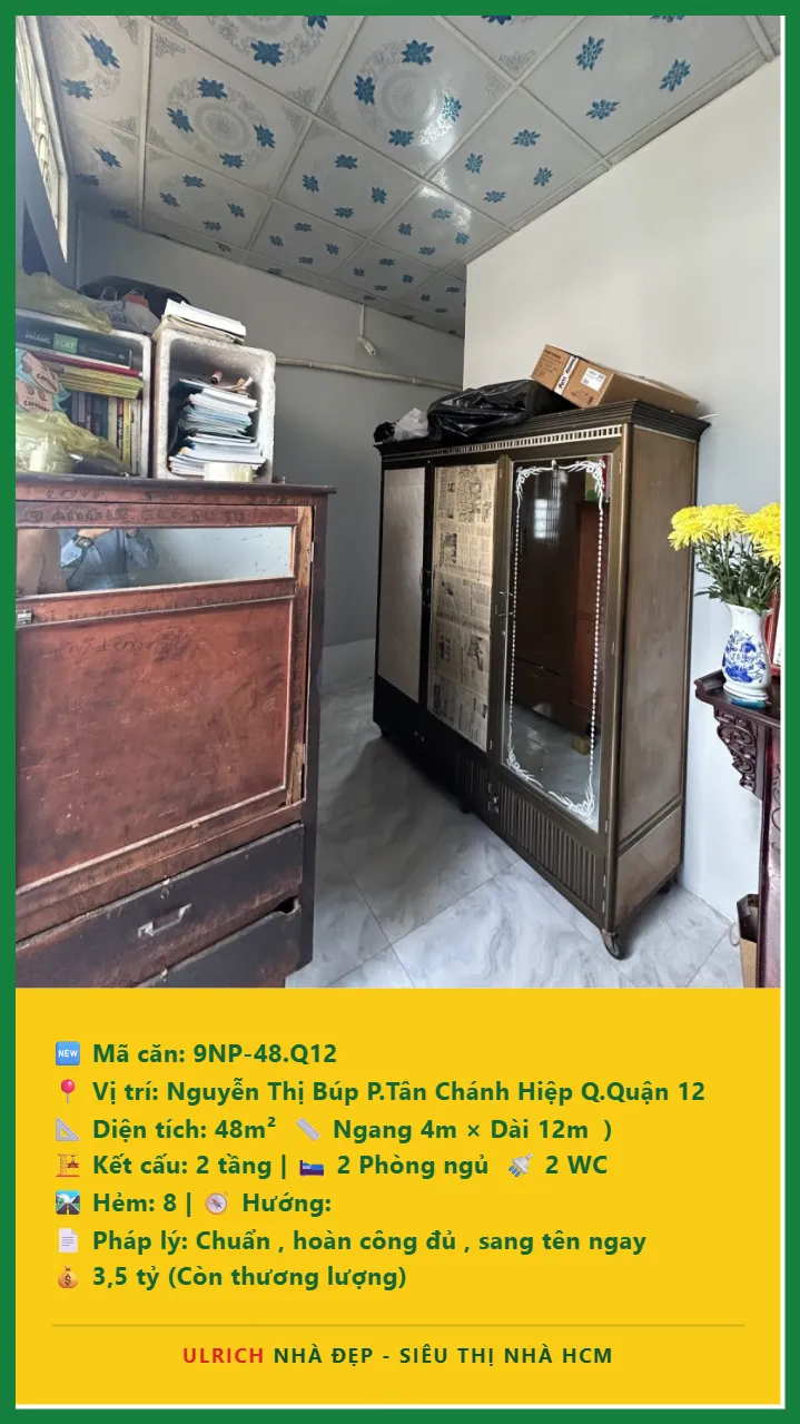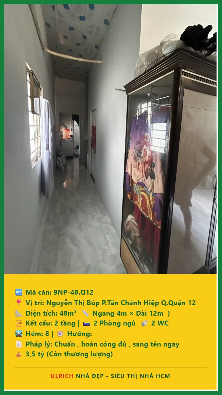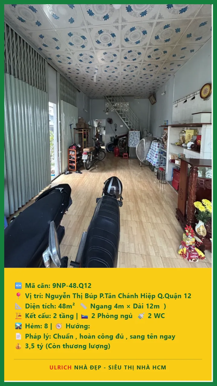 Bán Nhà phố hẻm Diện tích 48m2 2 tầng đường Nguyễn Thị Búp P. Tân Chánh Hiệp Q. Quận 12 💰Giá 3.5 tỷ