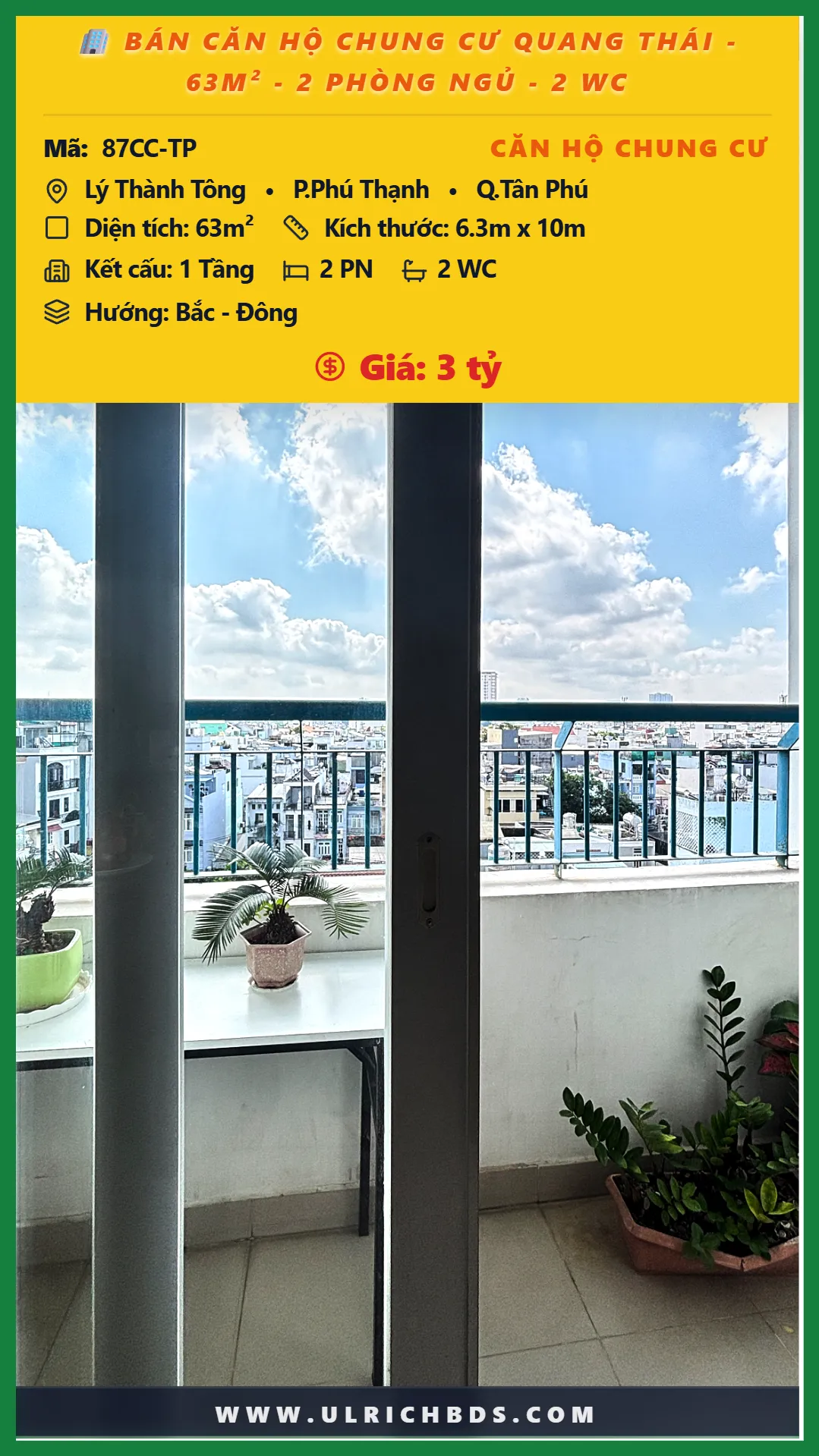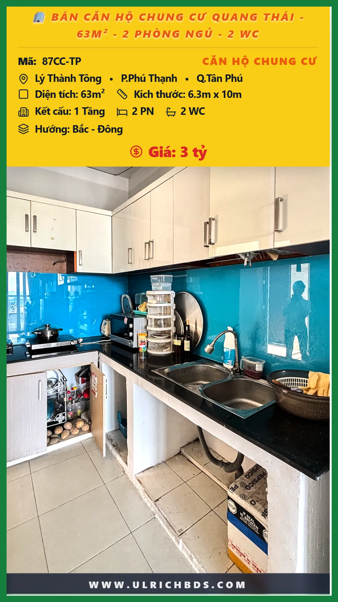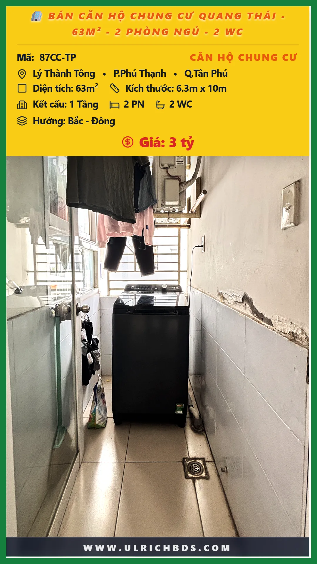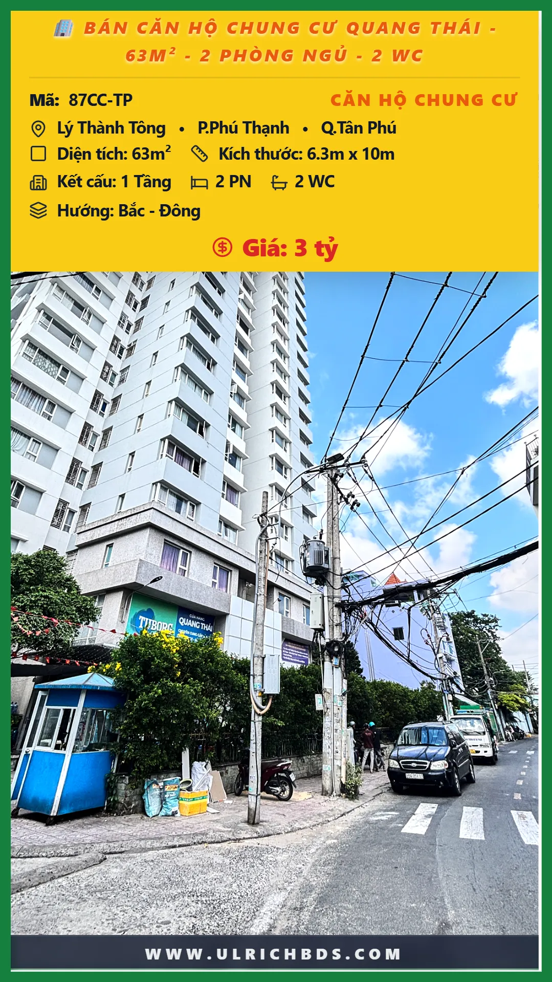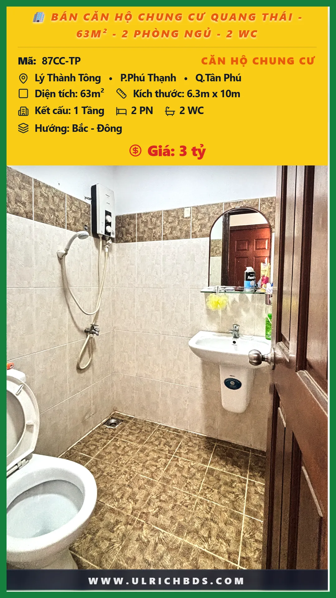 Bán Căn hộ chung cư Diện tích 63m2  1 tầng đường Lý Thành Tông P. Phú Thạnh Q. Tân Phú 💰Giá 3 tỷ