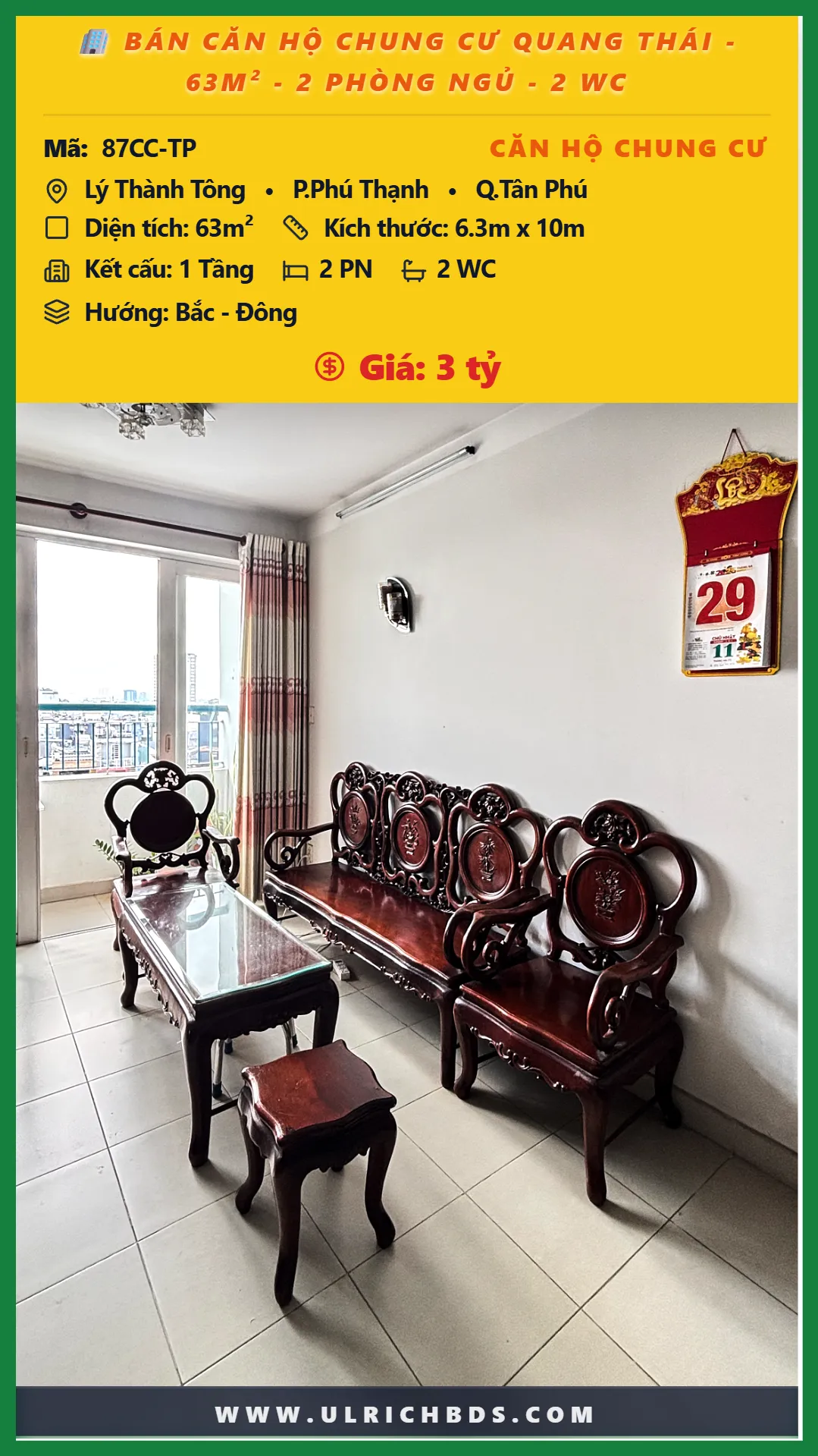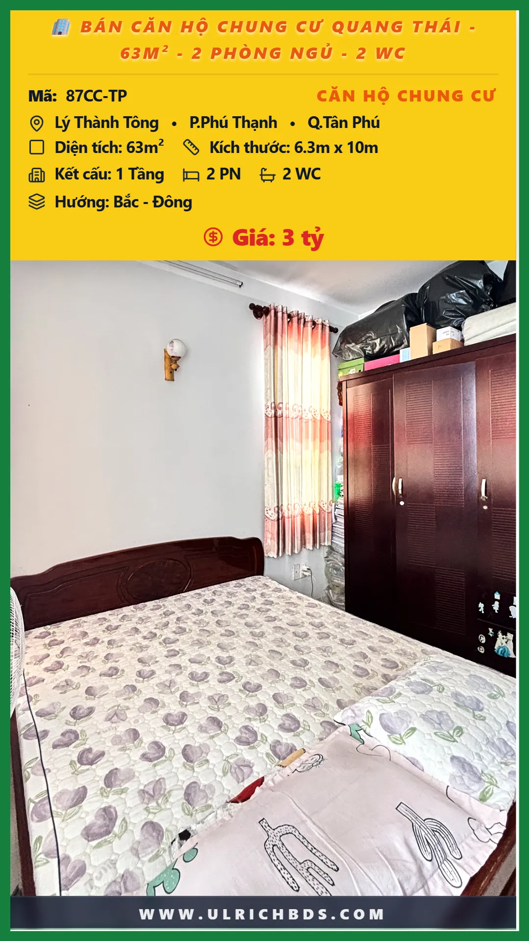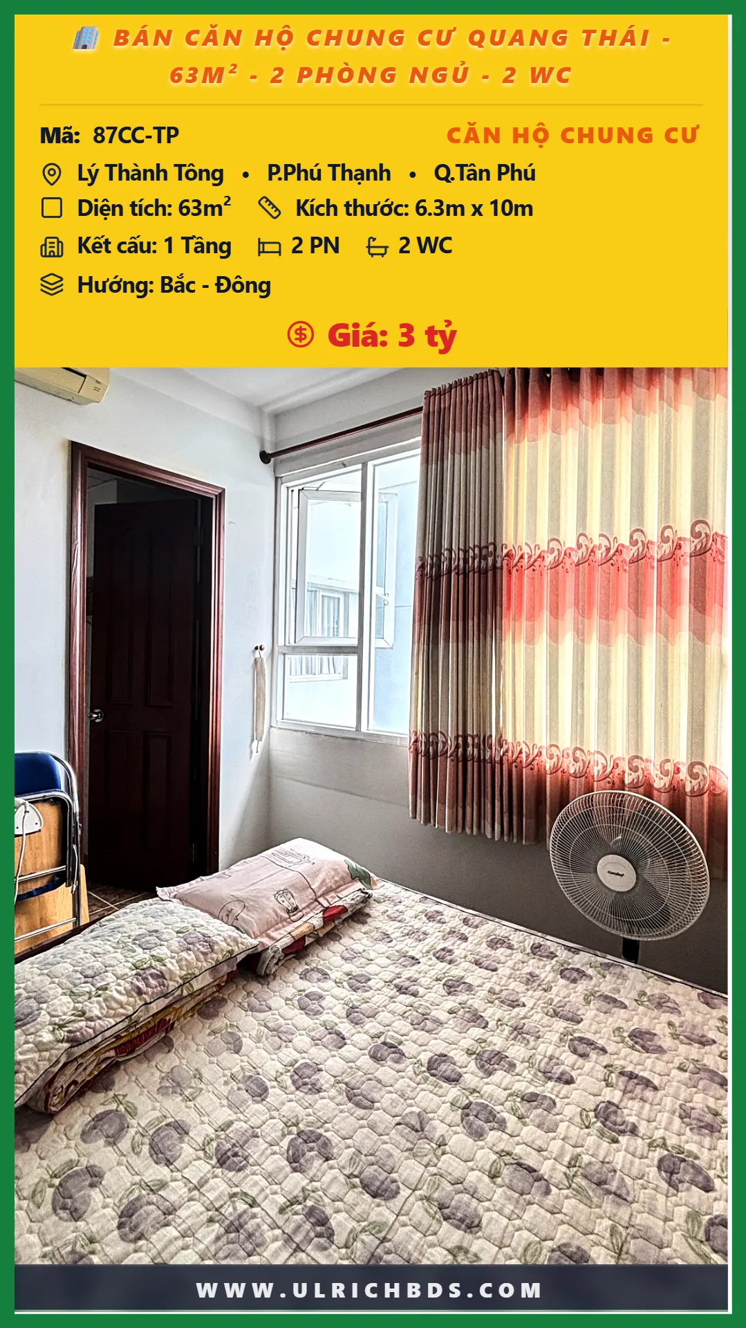 BÁN CĂN HỘ CHUNG CƯ QUANG THÁI – 63M² – 2 PHÒNG NGỦ – 2 WC