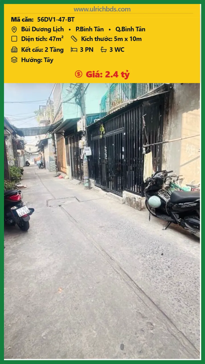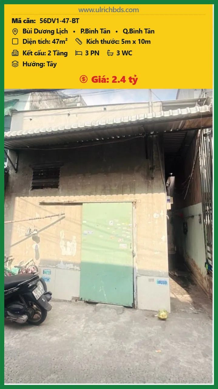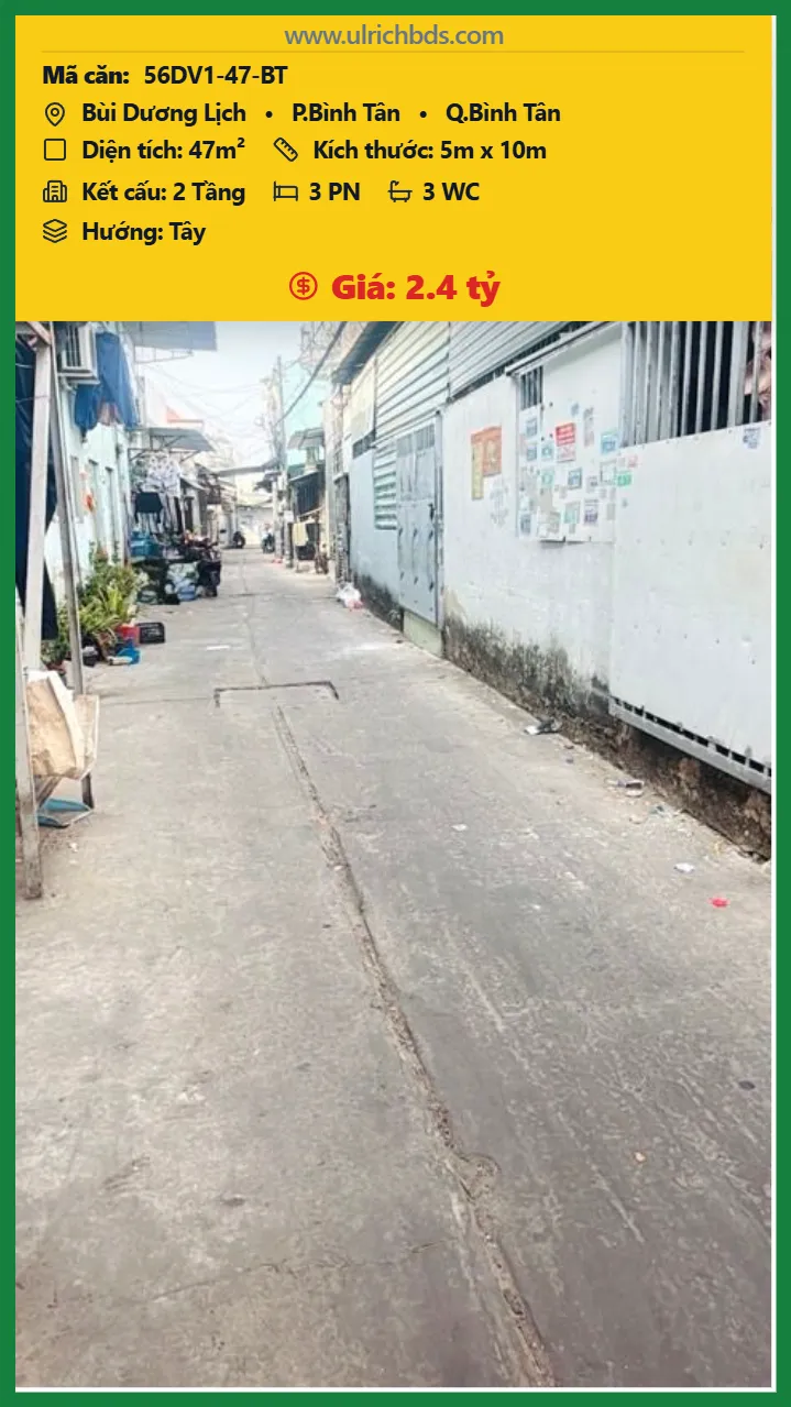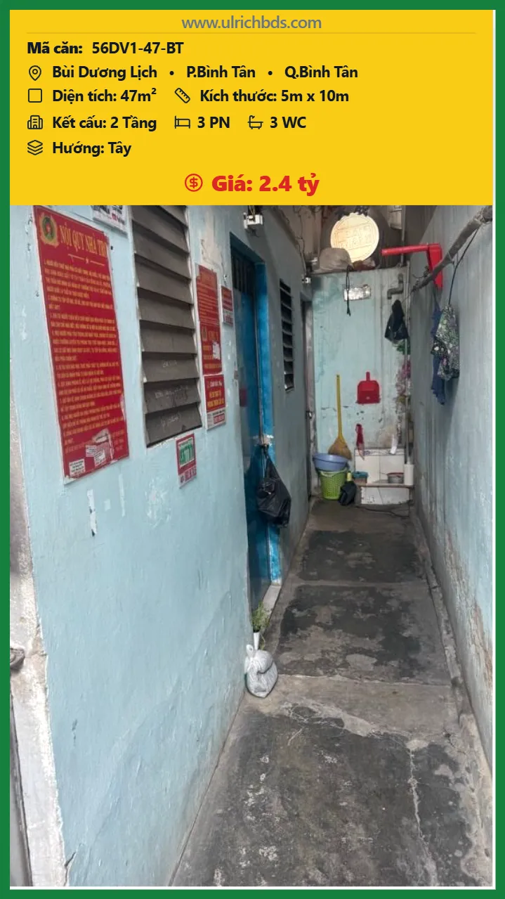 BÁN DÃY TRỌ – BÙI DƯƠNG LỊCH – BÌNH TÂN – HẺM 4M THOÁNG – NGAY CHỢ – DÒNG TIỀN 5 TRIỆU/THÁNG – CHỈ 2,4 TỶ