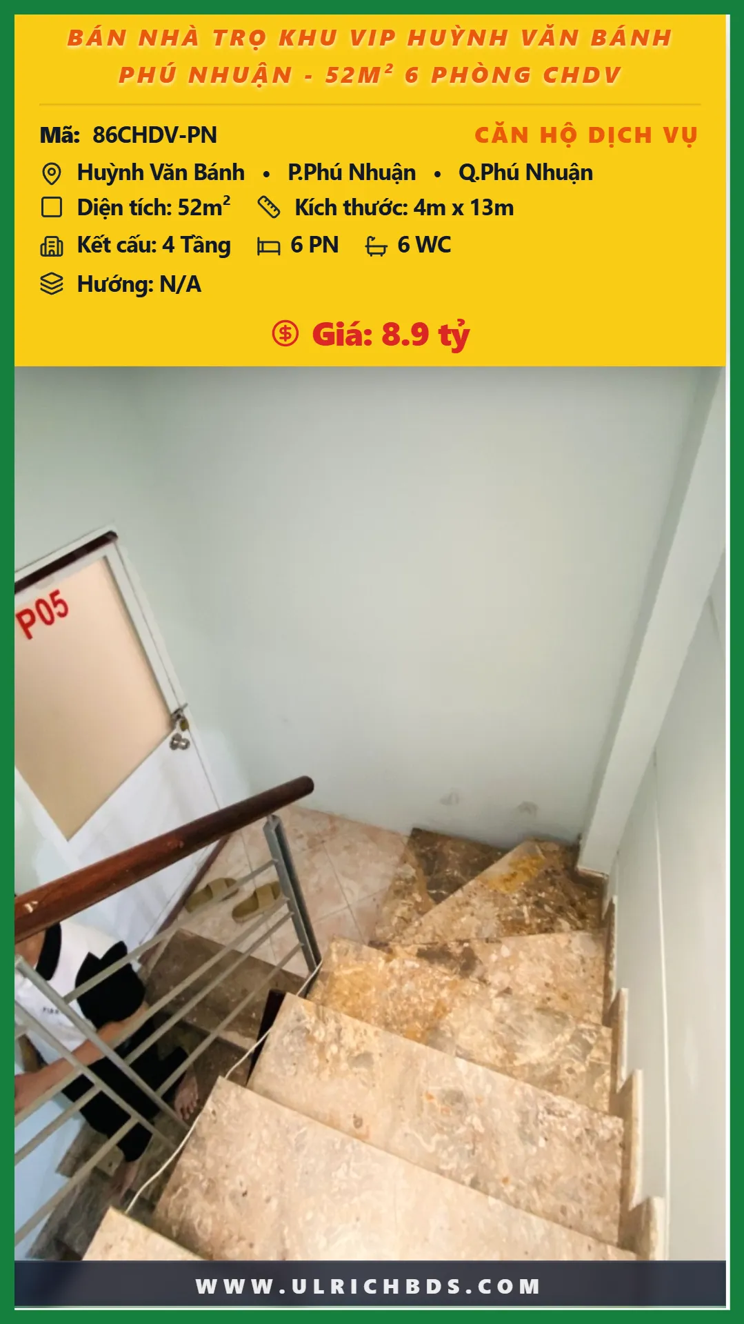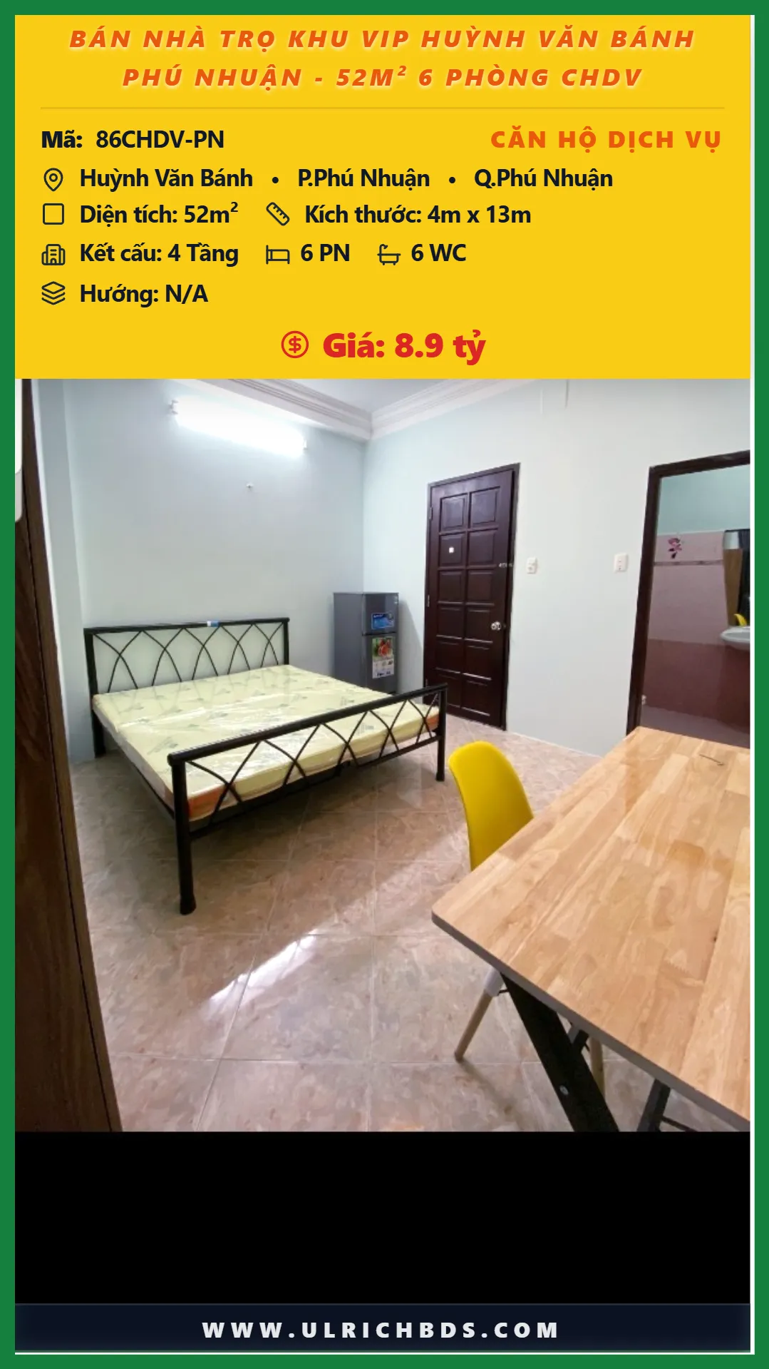 BÁN NHÀ TRỌ KHU VIP HUỲNH VĂN BÁNH PHÚ NHUẬN – 52m² 6 PHÒNG CHDV