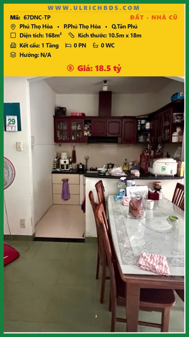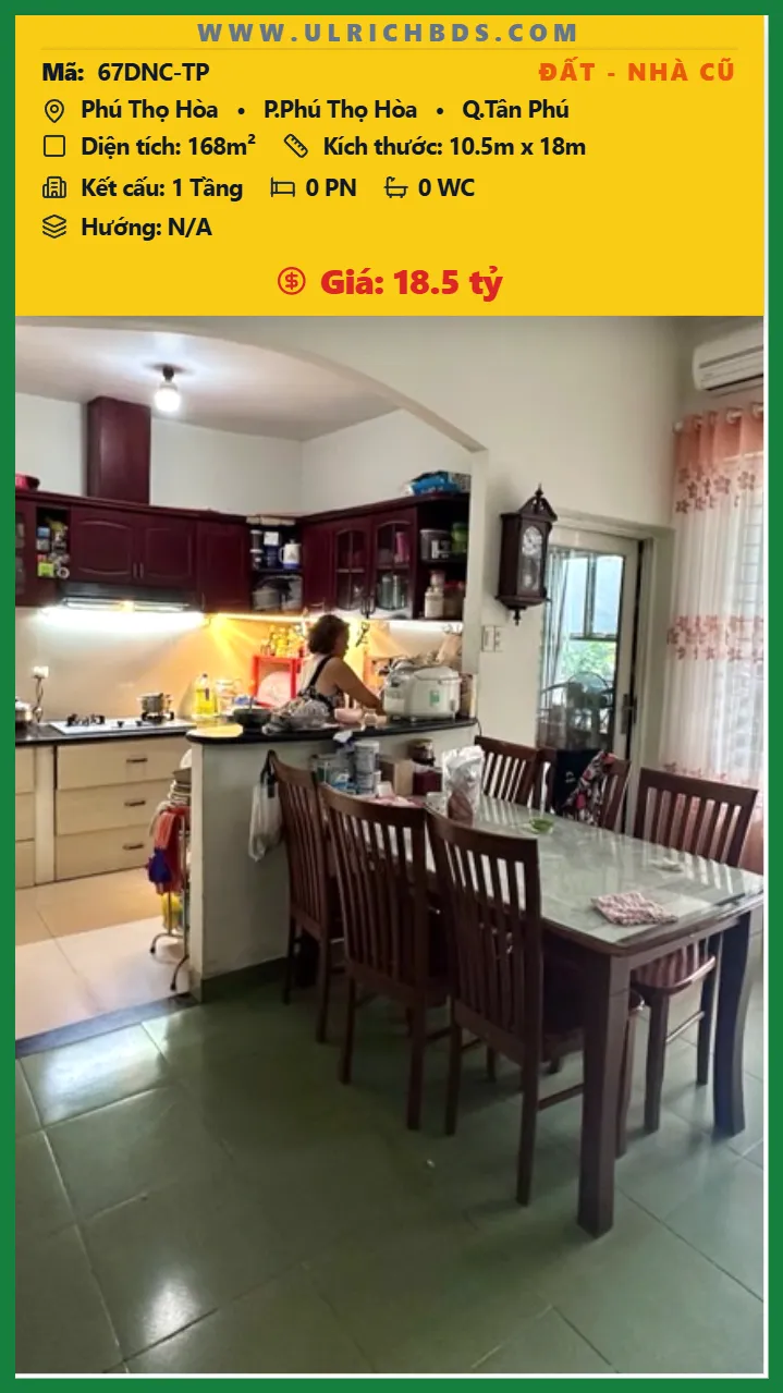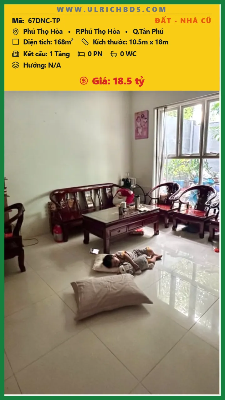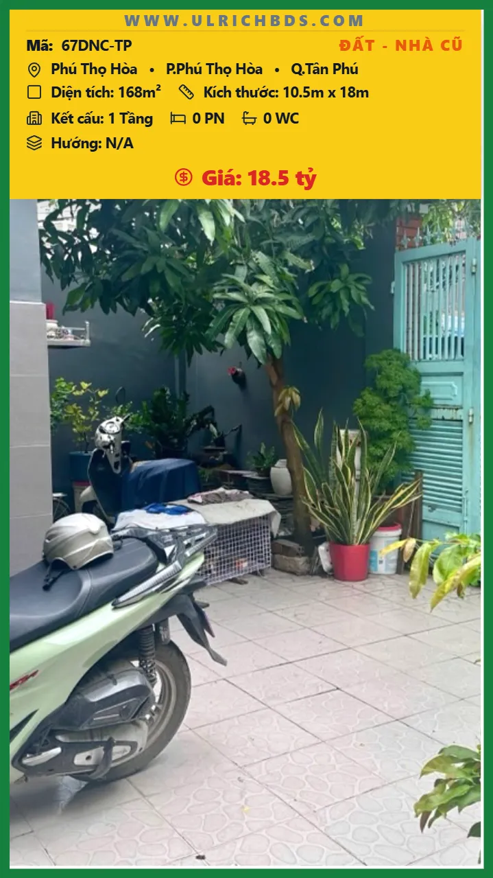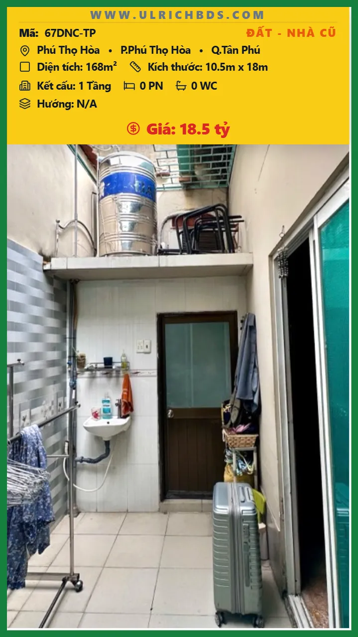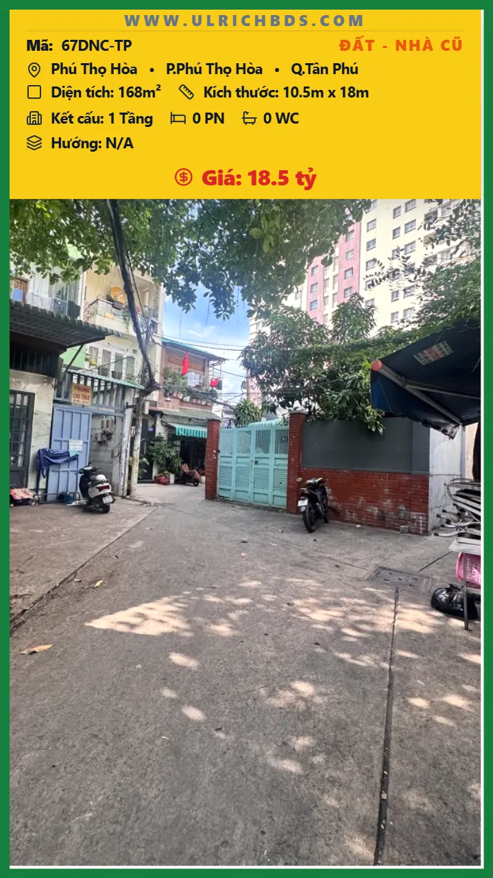 Bán Đất – Nhà cũ Diện tích 168m2 1 tầng đường Phú Thọ Hòa P. Phú Thọ Hòa Q. Tân Phú 💰Giá 18.5 tỷ