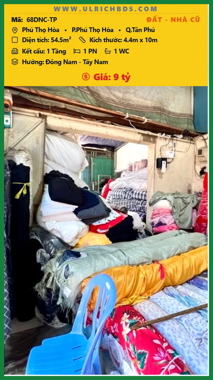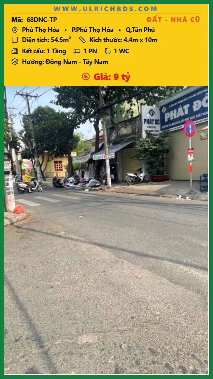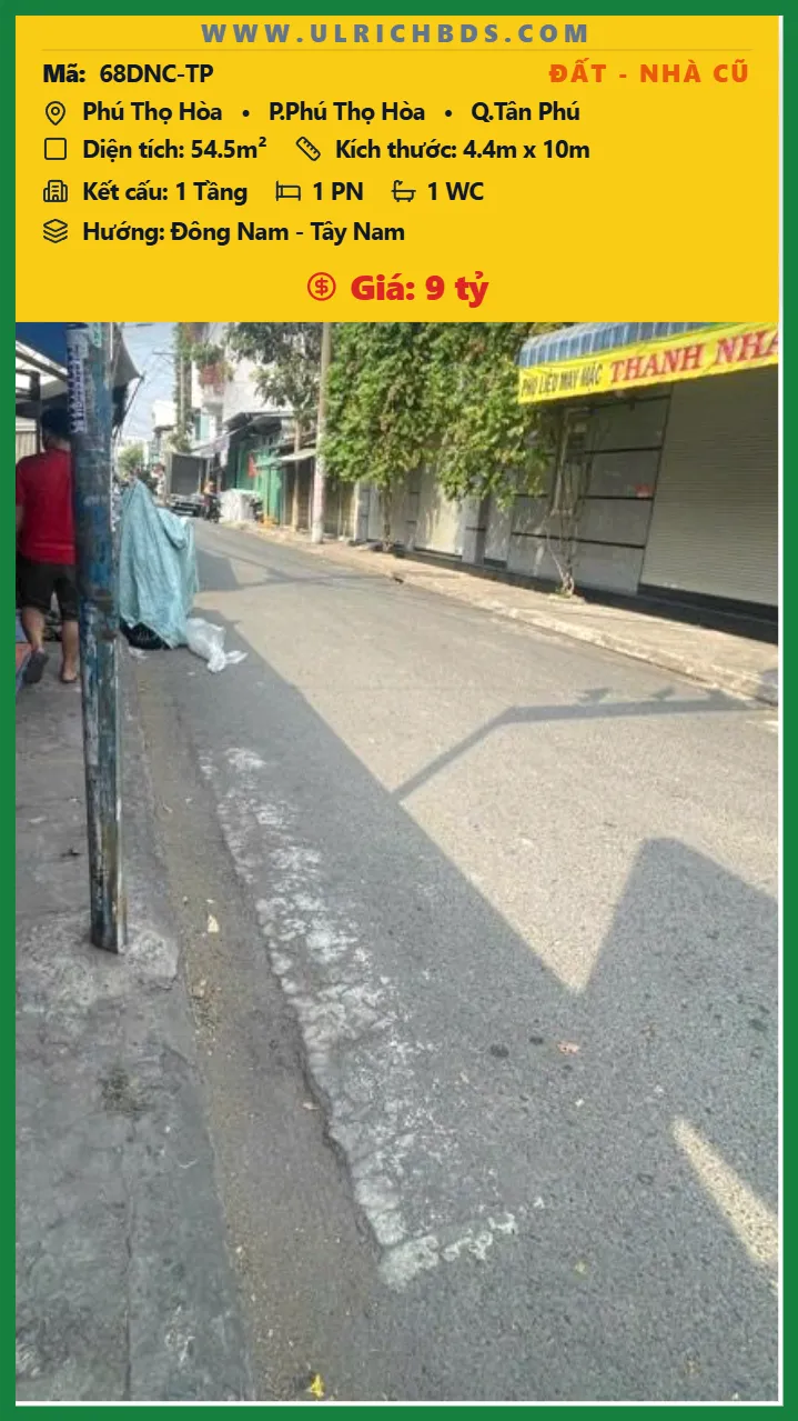 Bán Đất – Nhà cũ Diện tích 54.5m2 1 tầng đường Phú Thọ Hòa P. Phú Thọ Hòa Q. Tân Phú 💰Giá 9 tỷ