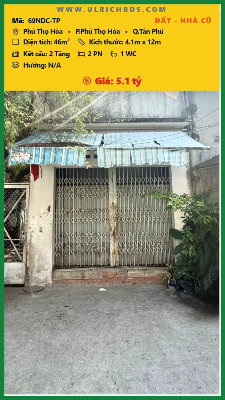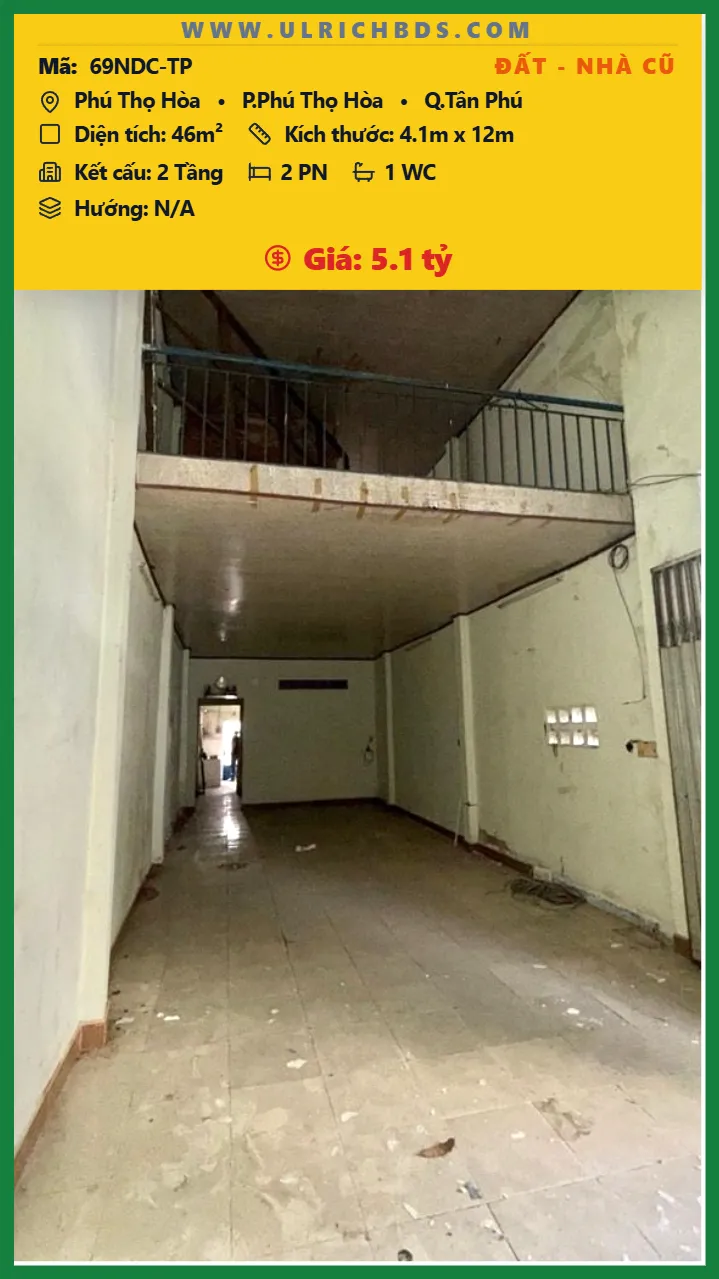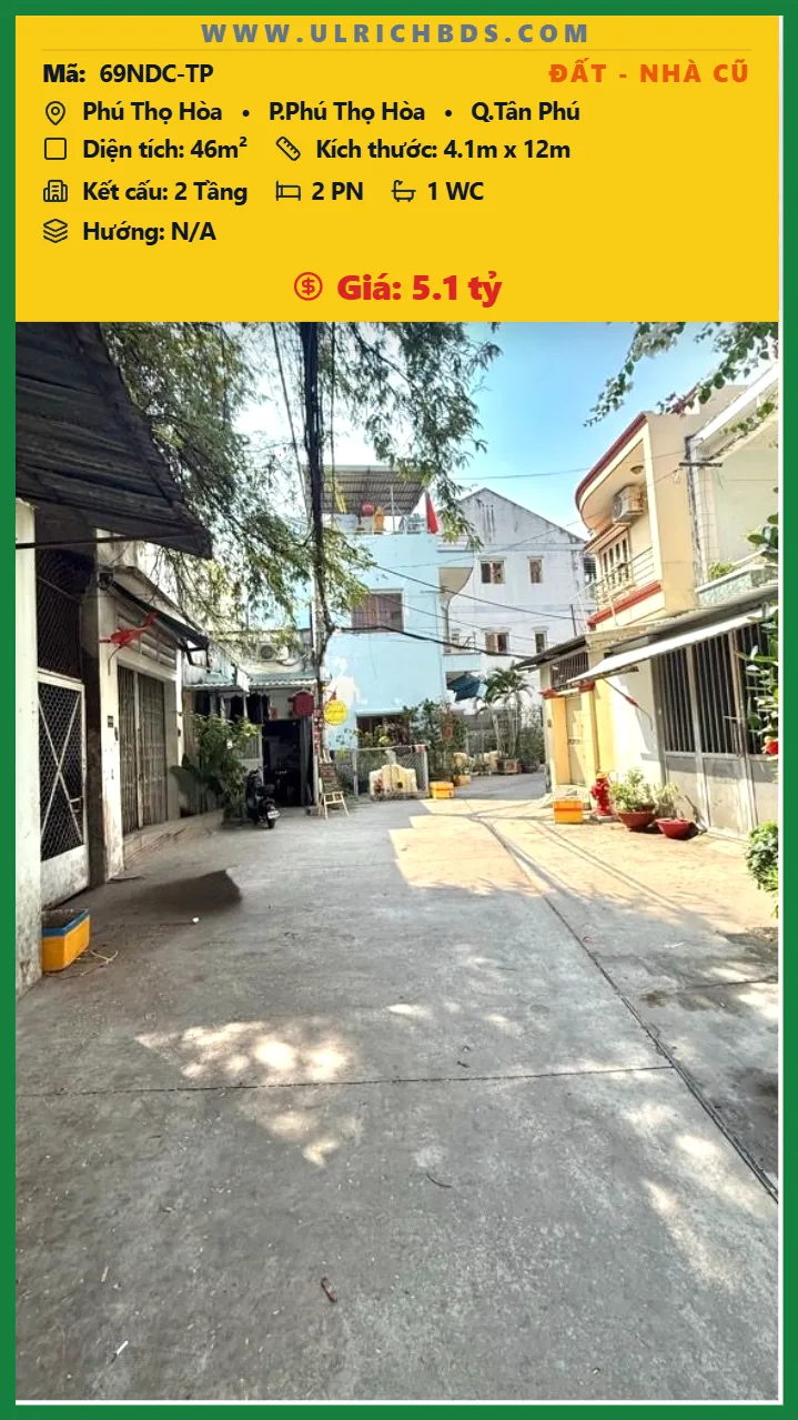 Bán Đất – Nhà cũ Diện tích 46m2 2 tầng đường Phú Thọ Hòa P. Phú Thọ Hòa Q. Tân Phú 💰Giá 5.1 tỷ