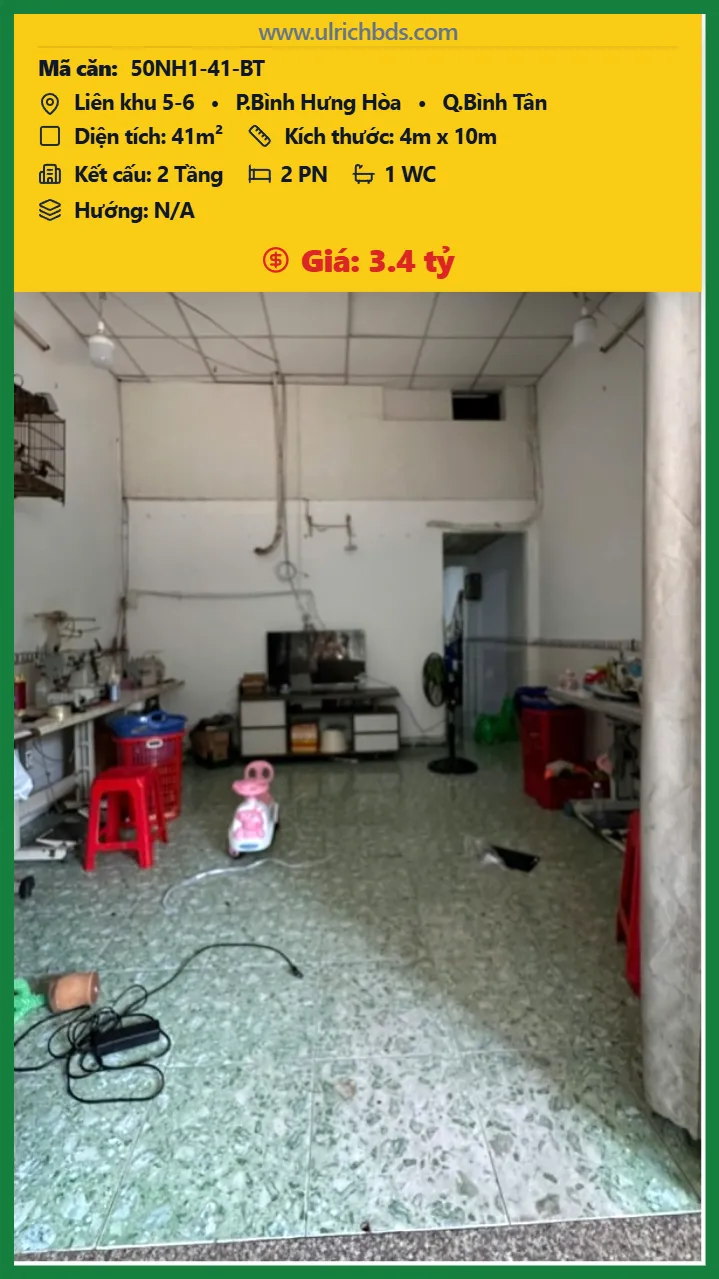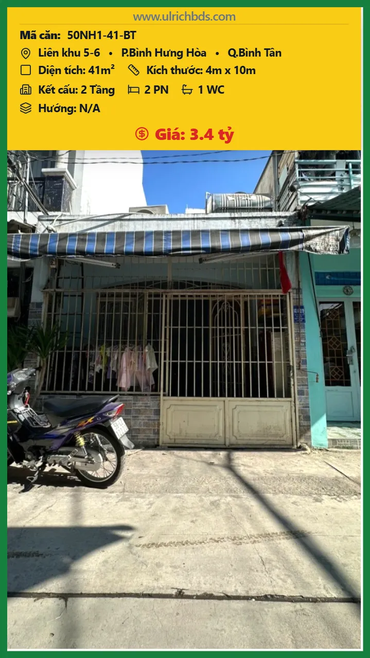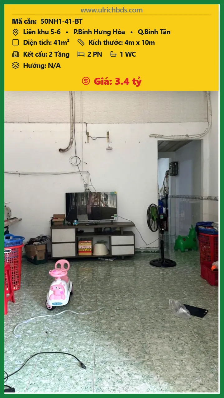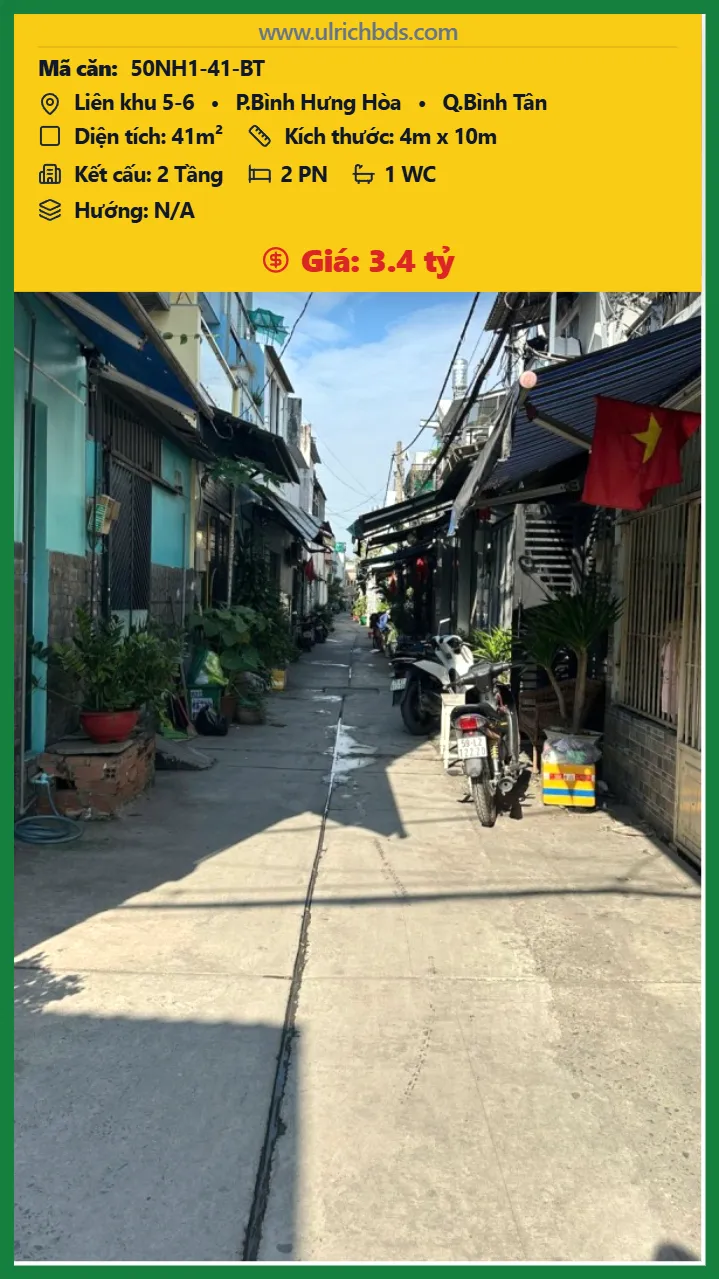 Bán Nhà phố hẻm Diện tích 41m2 2 tầng đường Liên khu 5-6 P. Bình Hưng Hòa Q. Bình Tân 💰Giá 3.4 tỷ