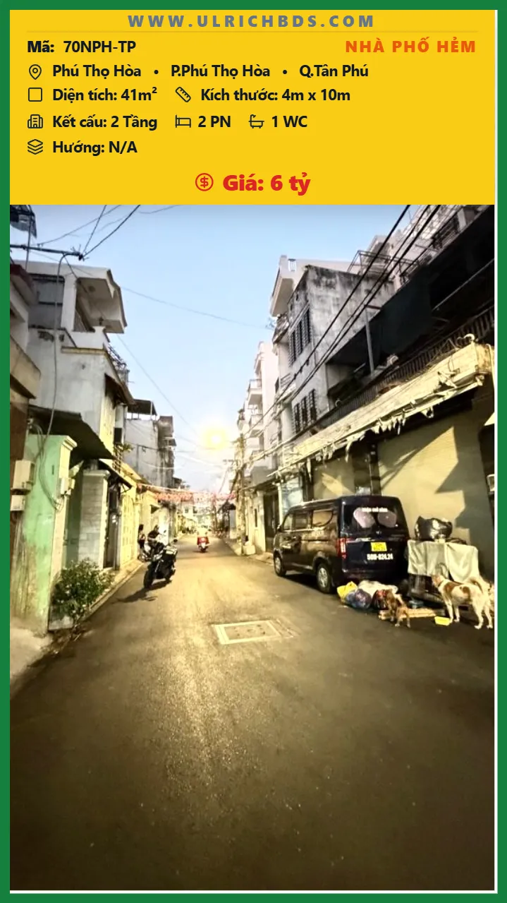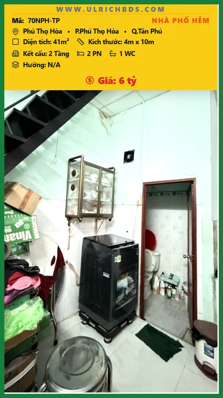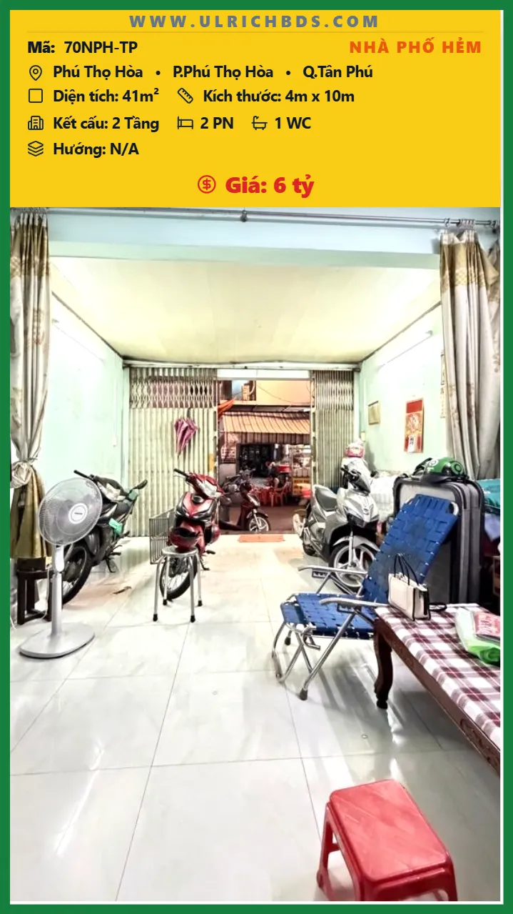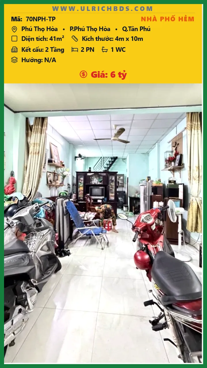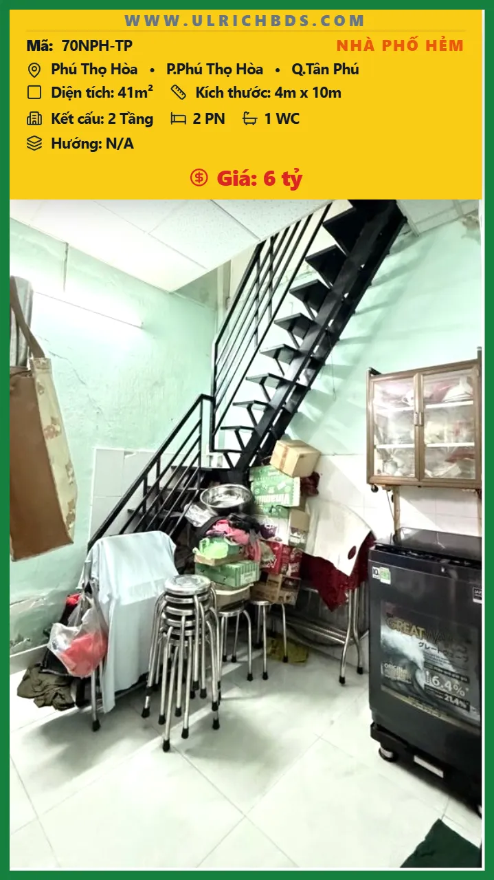 Bán Nhà phố hẻm Diện tích 41m2 2 tầng đường Phú Thọ Hòa P. Phú Thọ Hòa Q. Tân Phú 💰Giá 6 tỷ