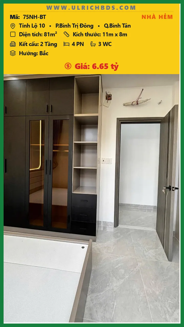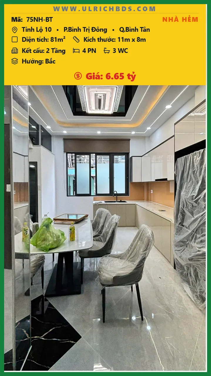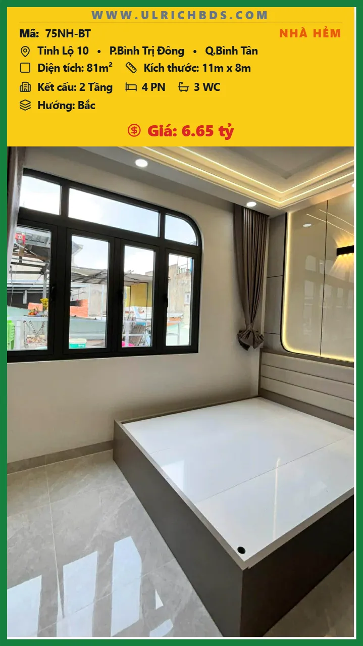 Bán Nhà phố hẻm Diện tích 81m2 2 tầng đường Tỉnh Lộ 10 P. Bình Trị Đông Q. Bình Tân 💰Giá 6.65 tỷ