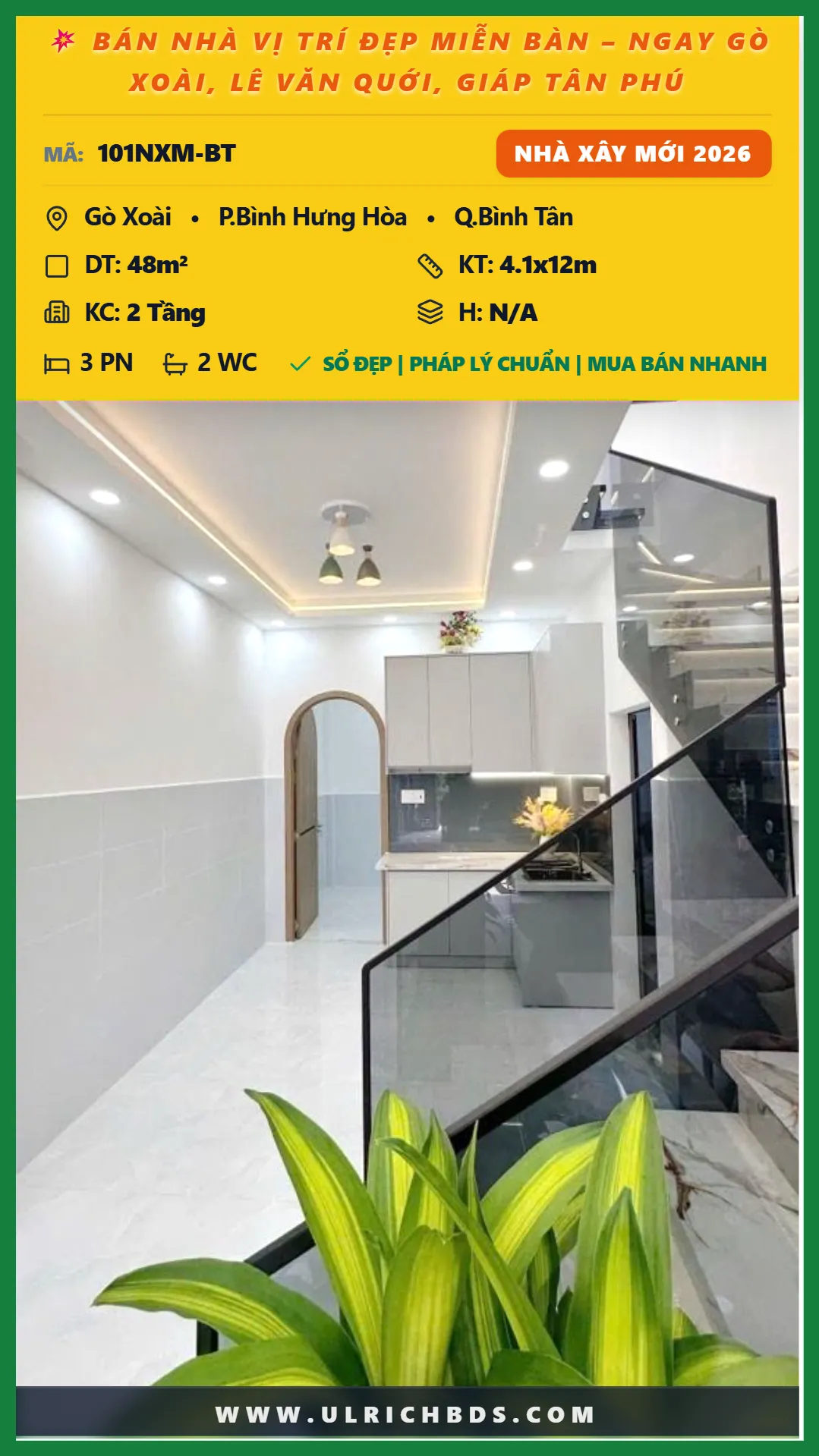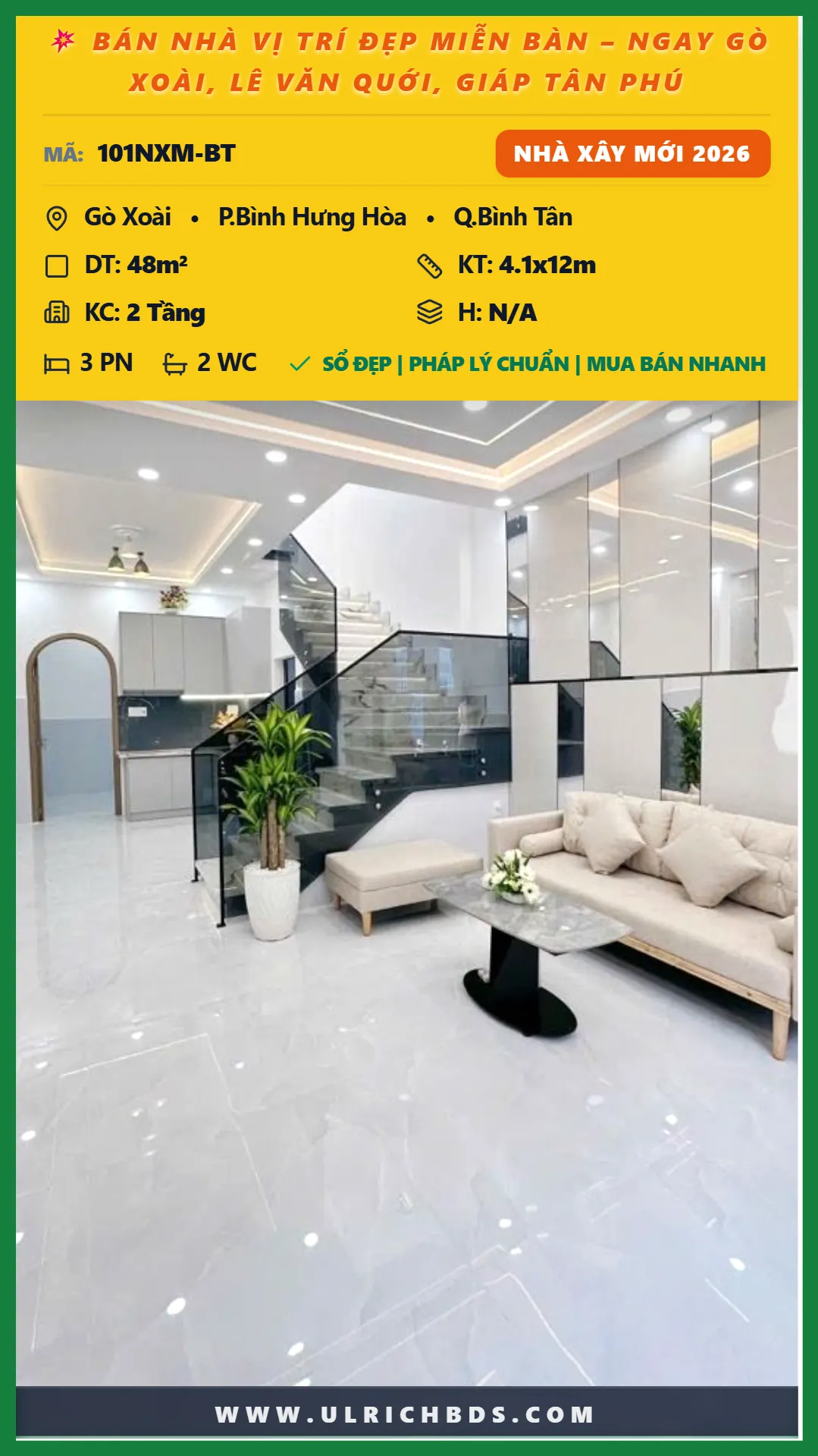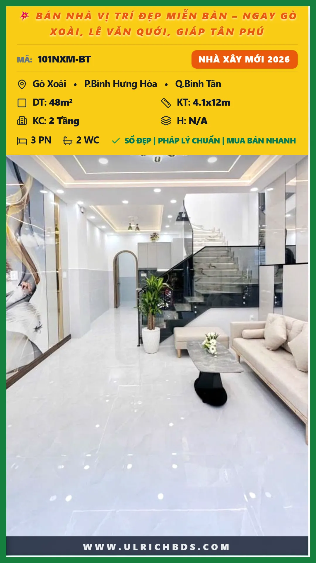 Bán Nhà xây mới 2026 Diện tích 48m2 2 tầng đường Gò Xoài P. Bình Hưng Hòa Q. Bình Tân 💰Giá 5.27 tỷ