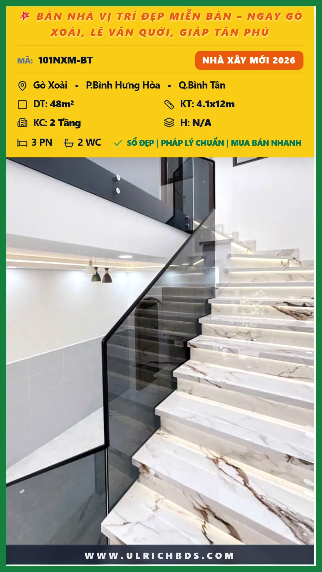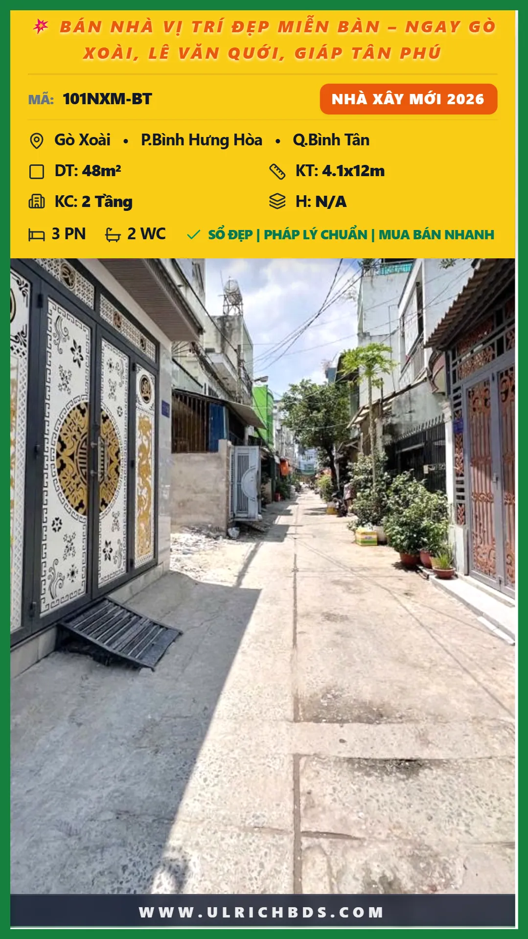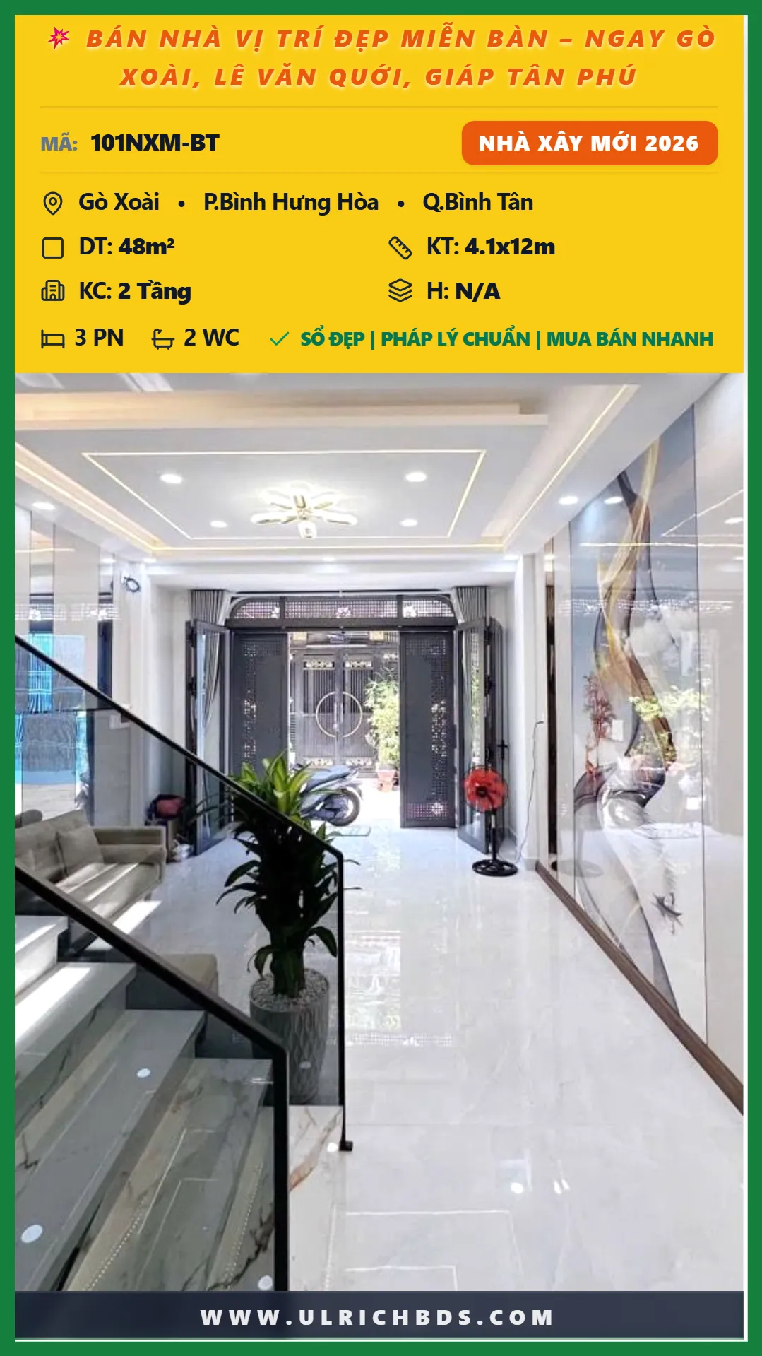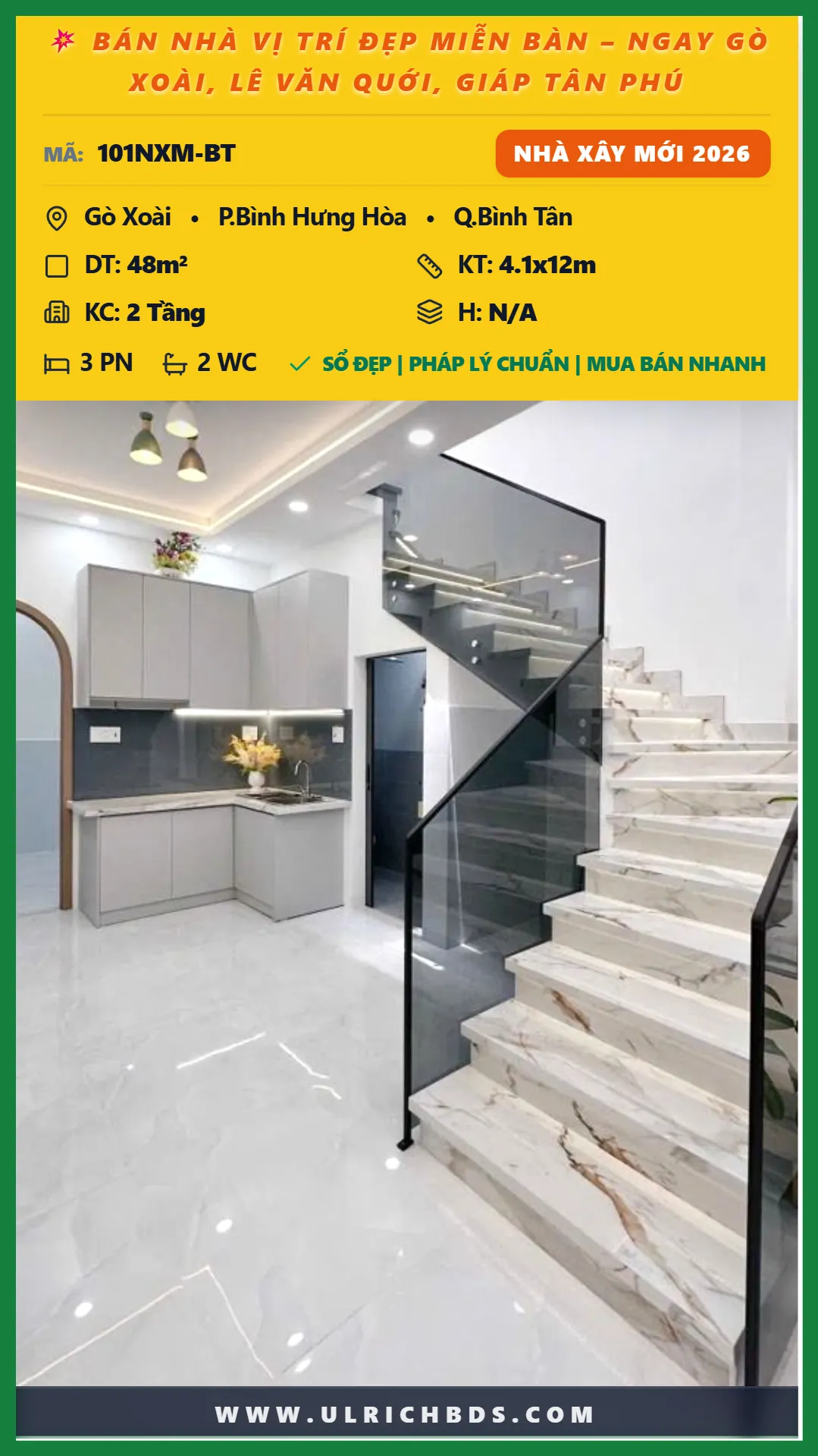 Bán Nhà xây mới 2026 Diện tích 48m2 2 tầng đường Gò Xoài P. Bình Hưng Hòa Q. Bình Tân 💰Giá 5.27 tỷ