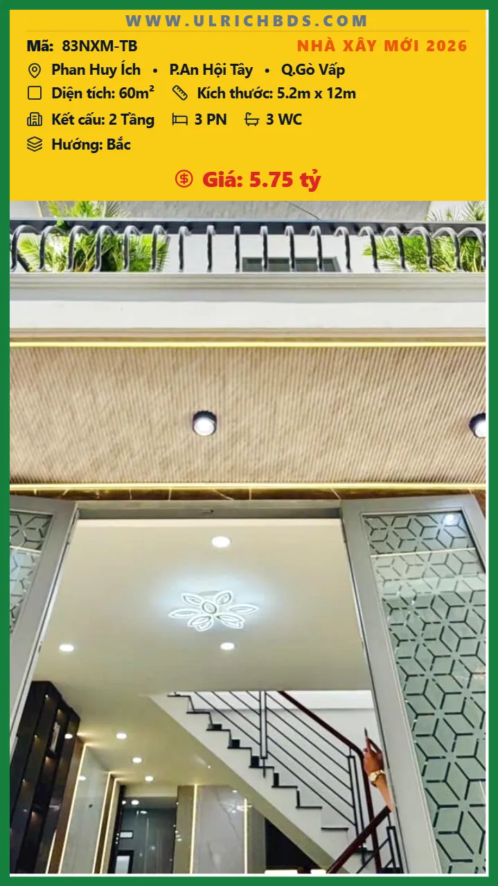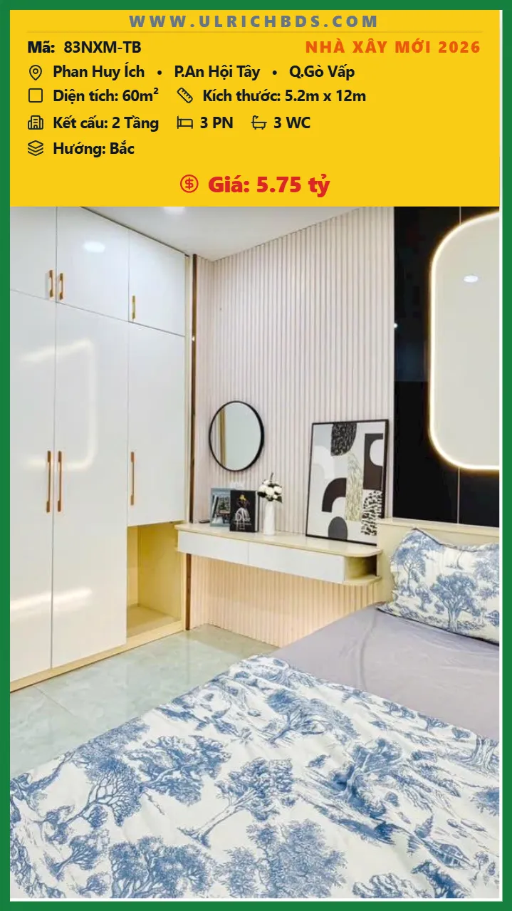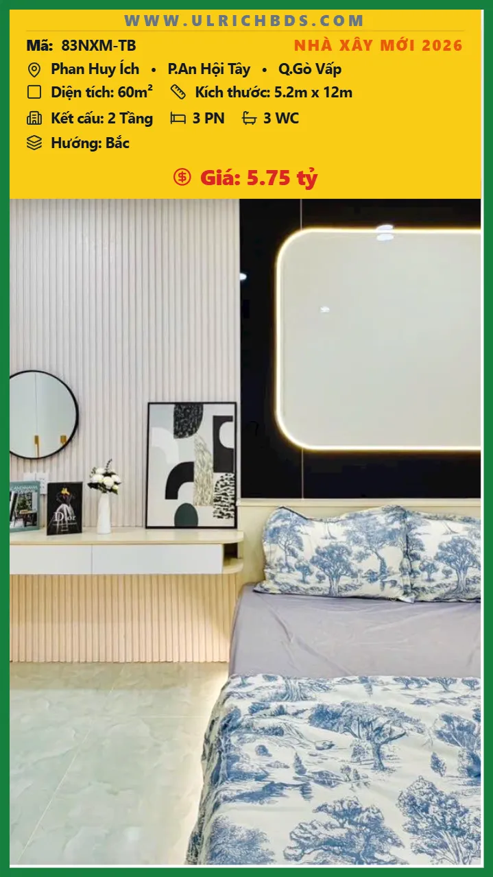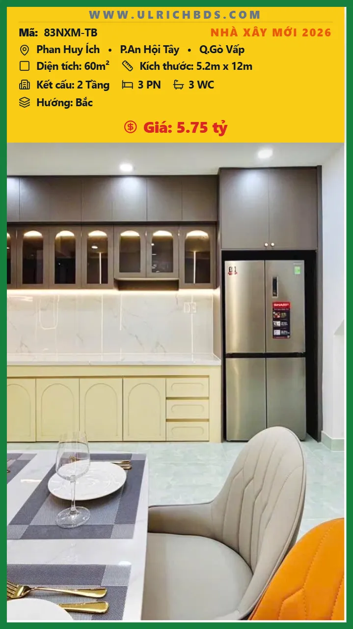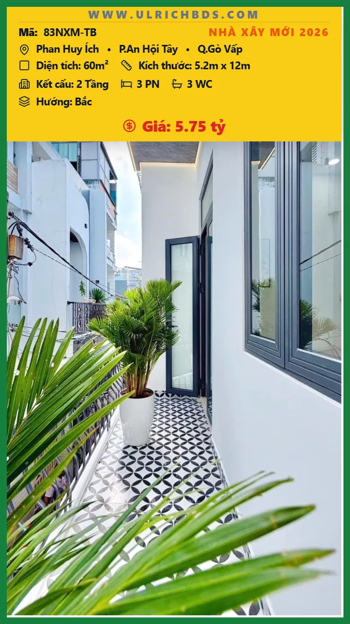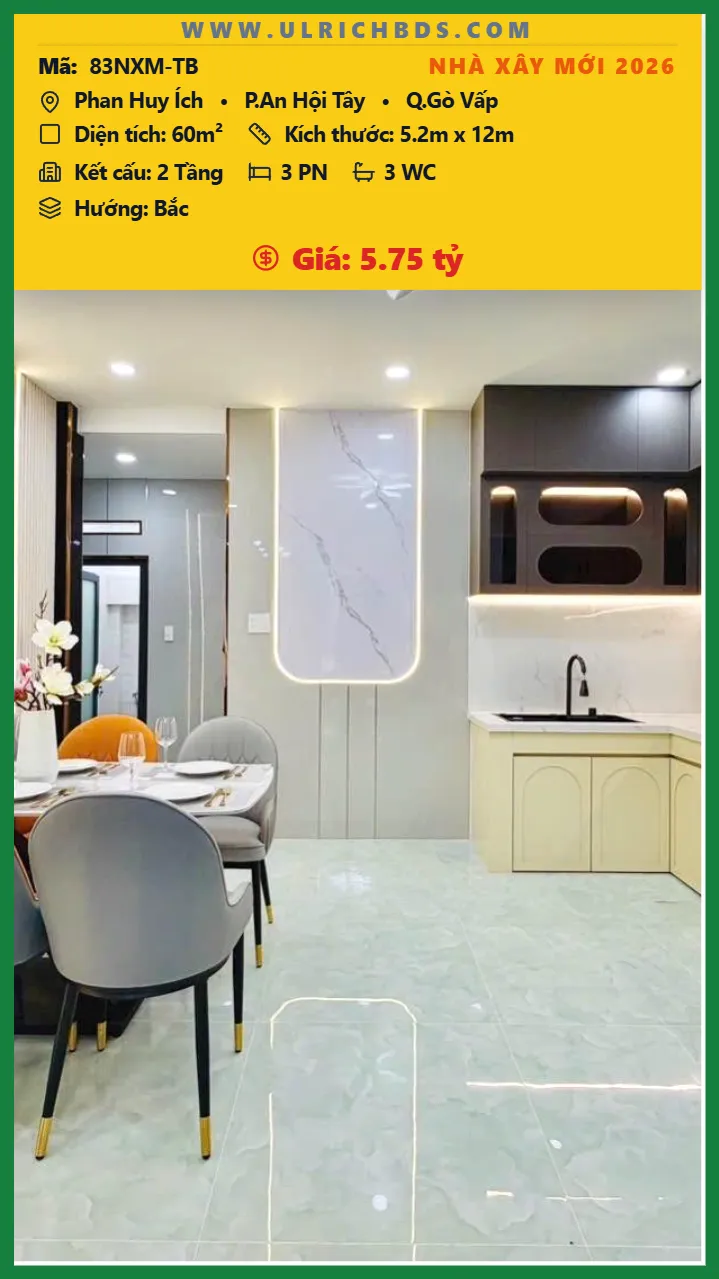 Bán Nhà xây mới 2026 Diện tích 60m2 2 tầng đường Phan Huy Ích P. An Hội Tây Q. Gò Vấp 💰Giá 5.75 tỷ