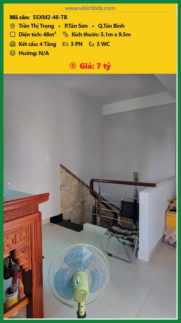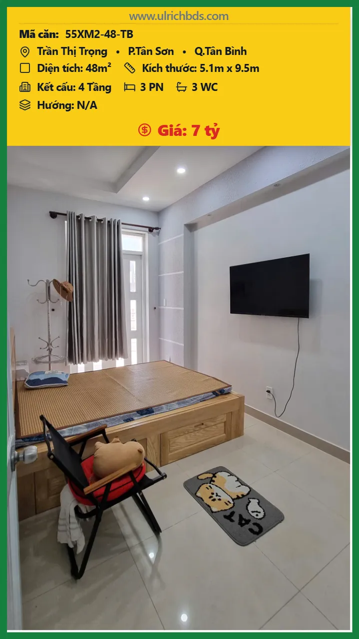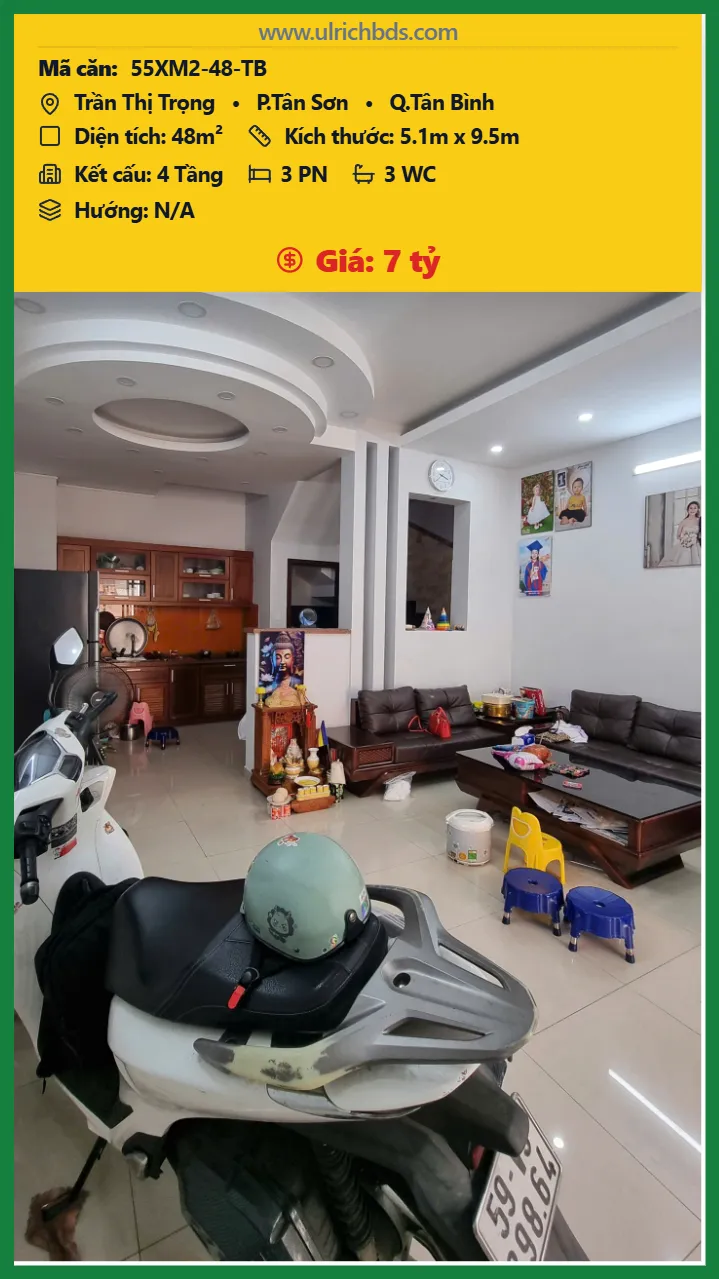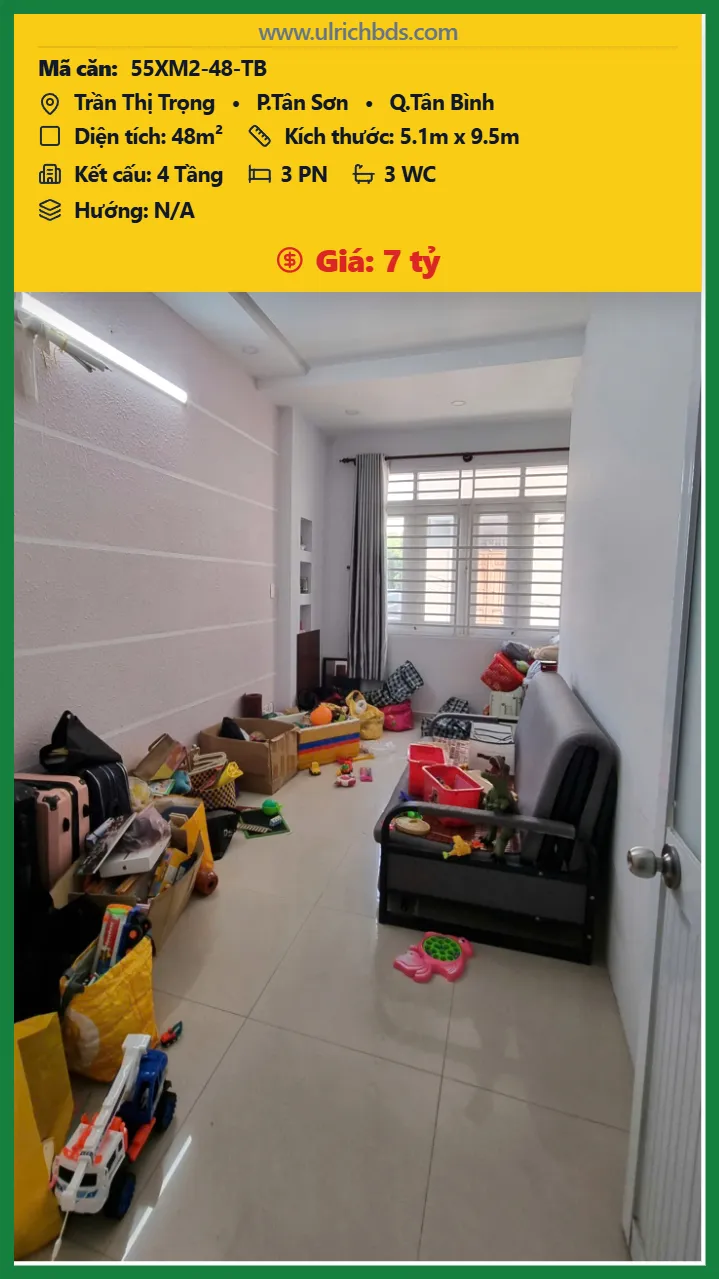 48m² – 4 TẦNG – NHÀ MỚI TINH – XE HƠI TỚI CỬA – 1 CĂN RA MẶT TIỀN – TRẦN THỊ TRỌNG – TÂN BÌNH – 7 TỶ