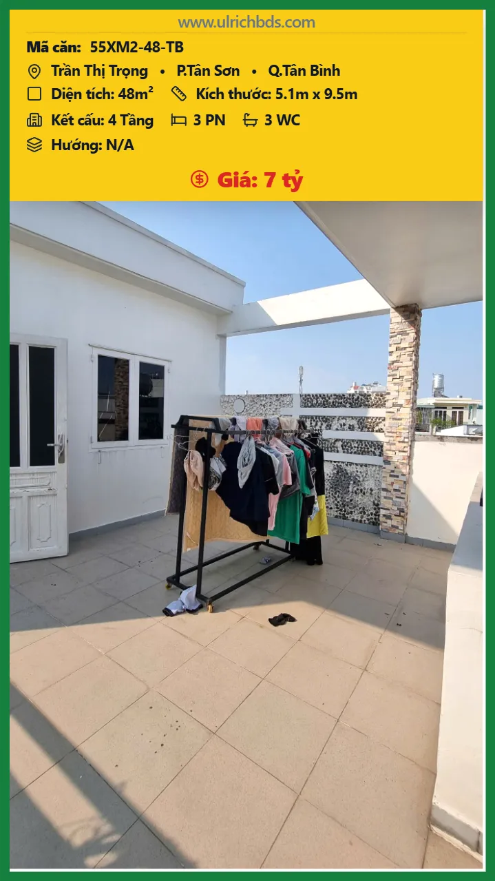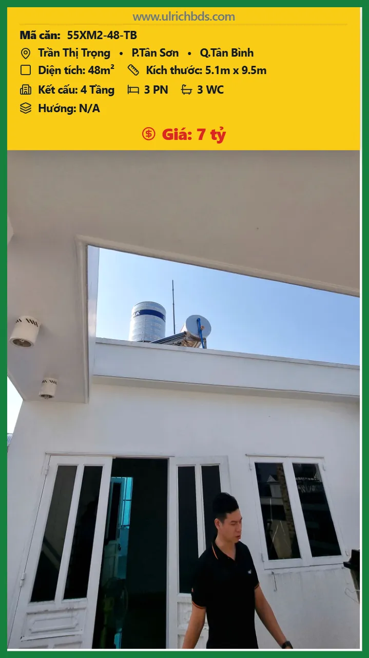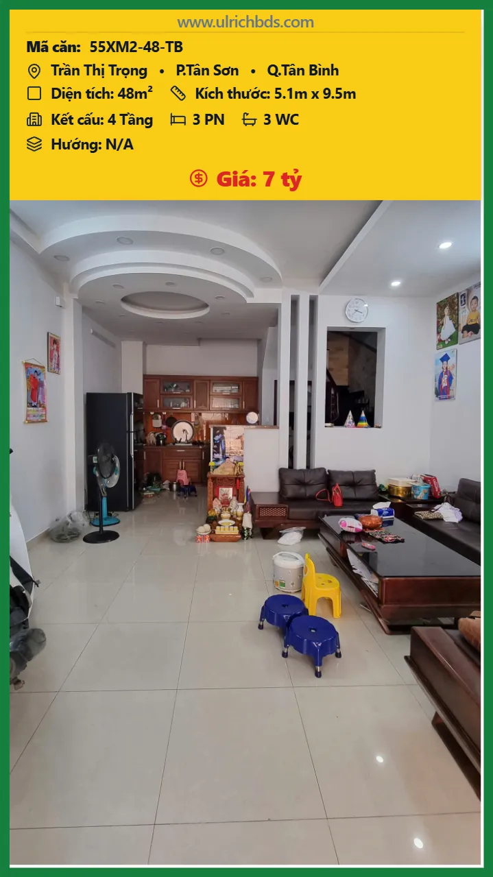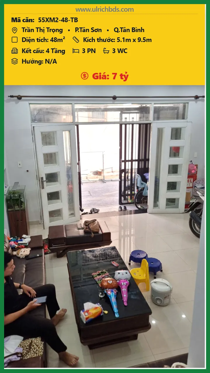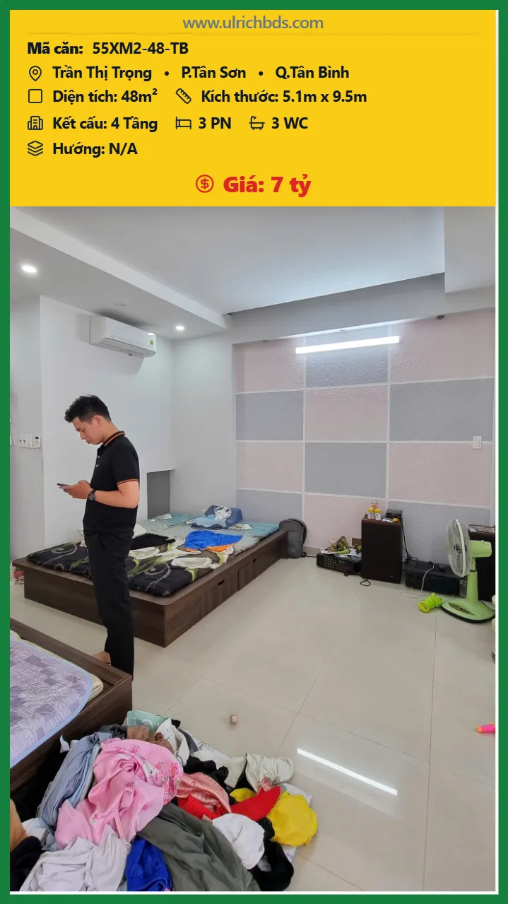 48m² – 4 TẦNG – NHÀ MỚI TINH – XE HƠI TỚI CỬA – 1 CĂN RA MẶT TIỀN – TRẦN THỊ TRỌNG – TÂN BÌNH – 7 TỶ